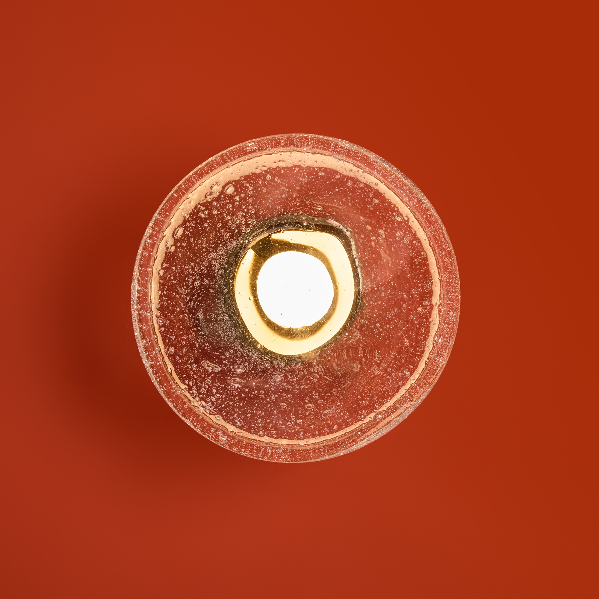 Арматура — металл. Стеклянные плафоны с пузырьками в трёх цветах: дымчатый, прозрачный, янтарный. Интегрированный LED источник света 3000К, Ra 80, угол 180°. Высота регулируется.