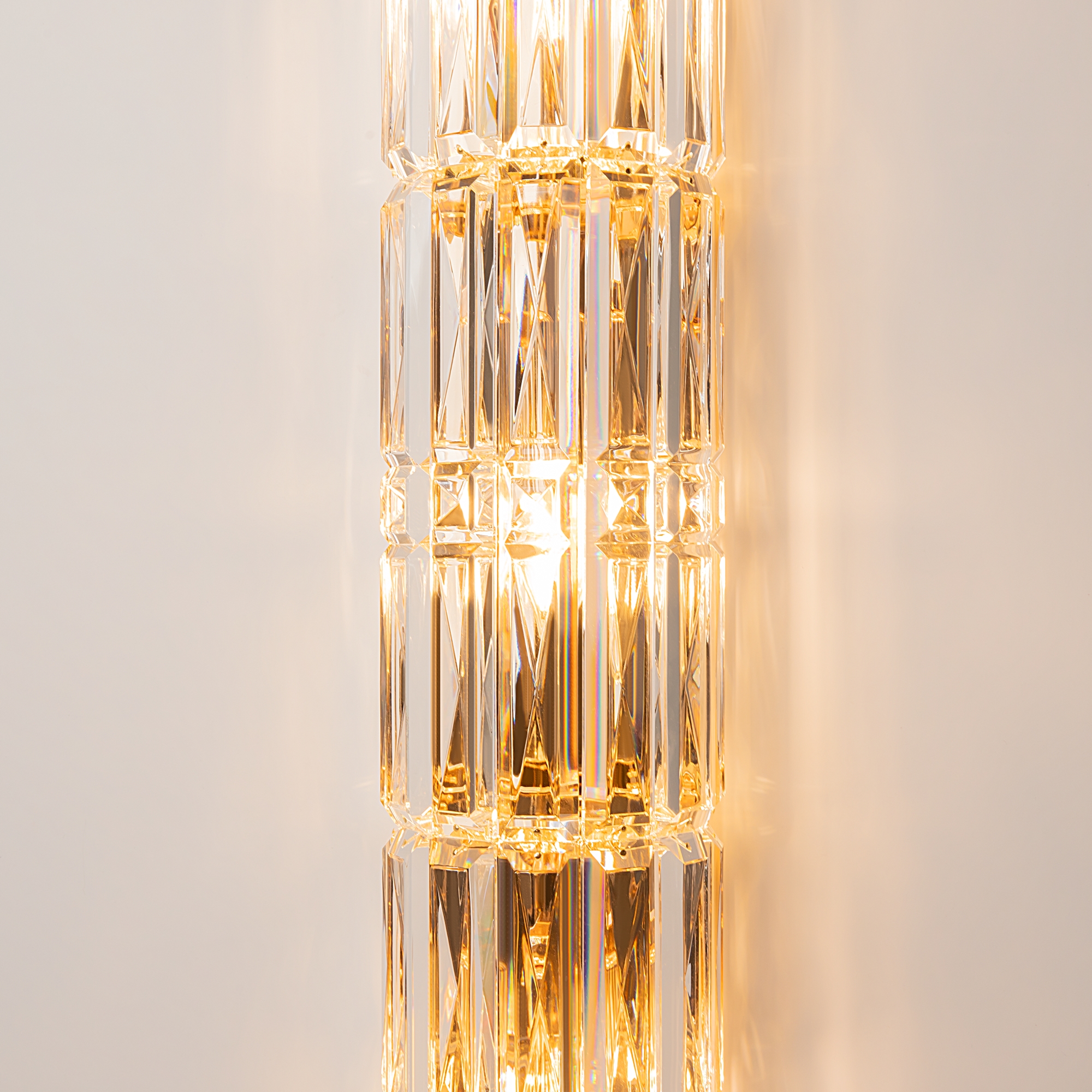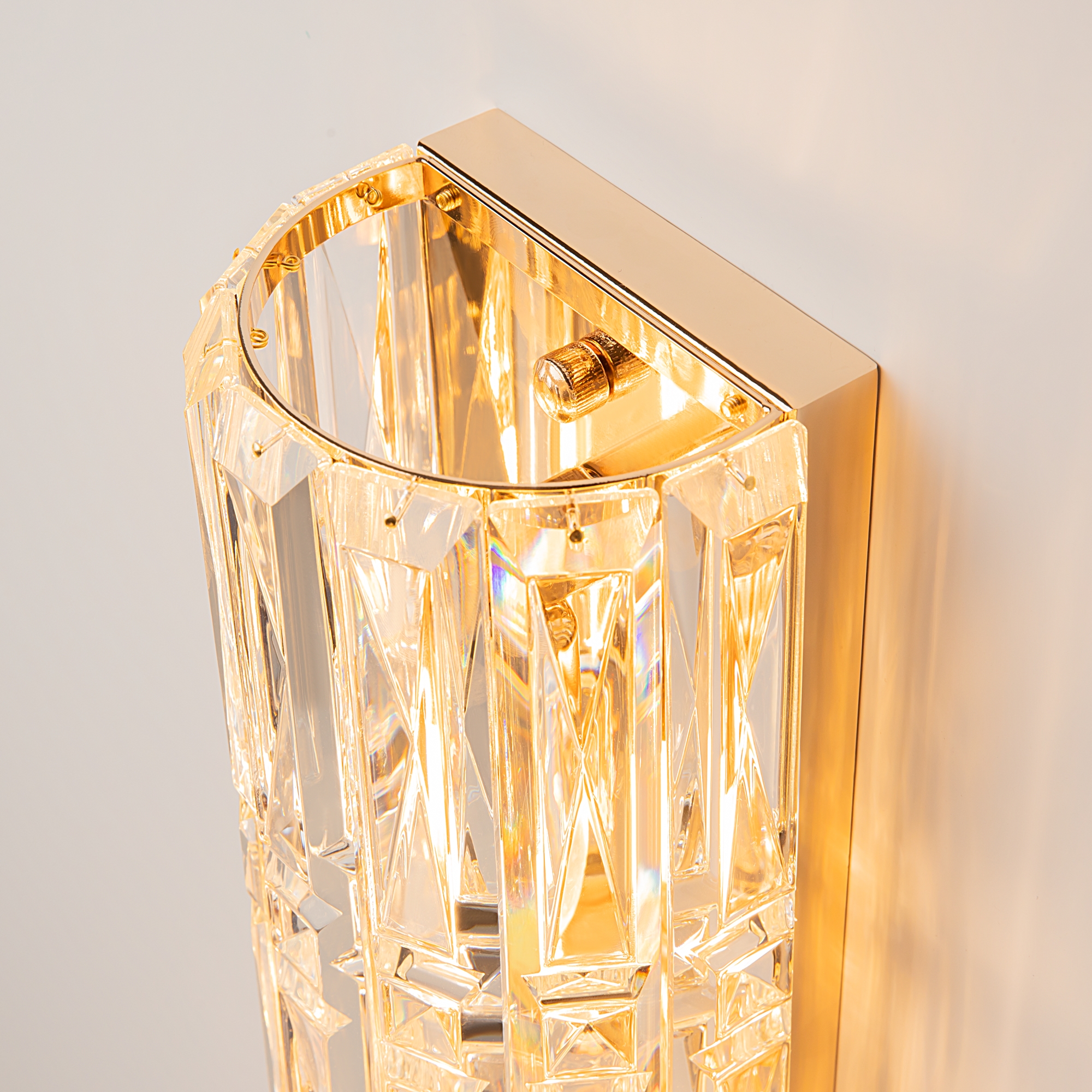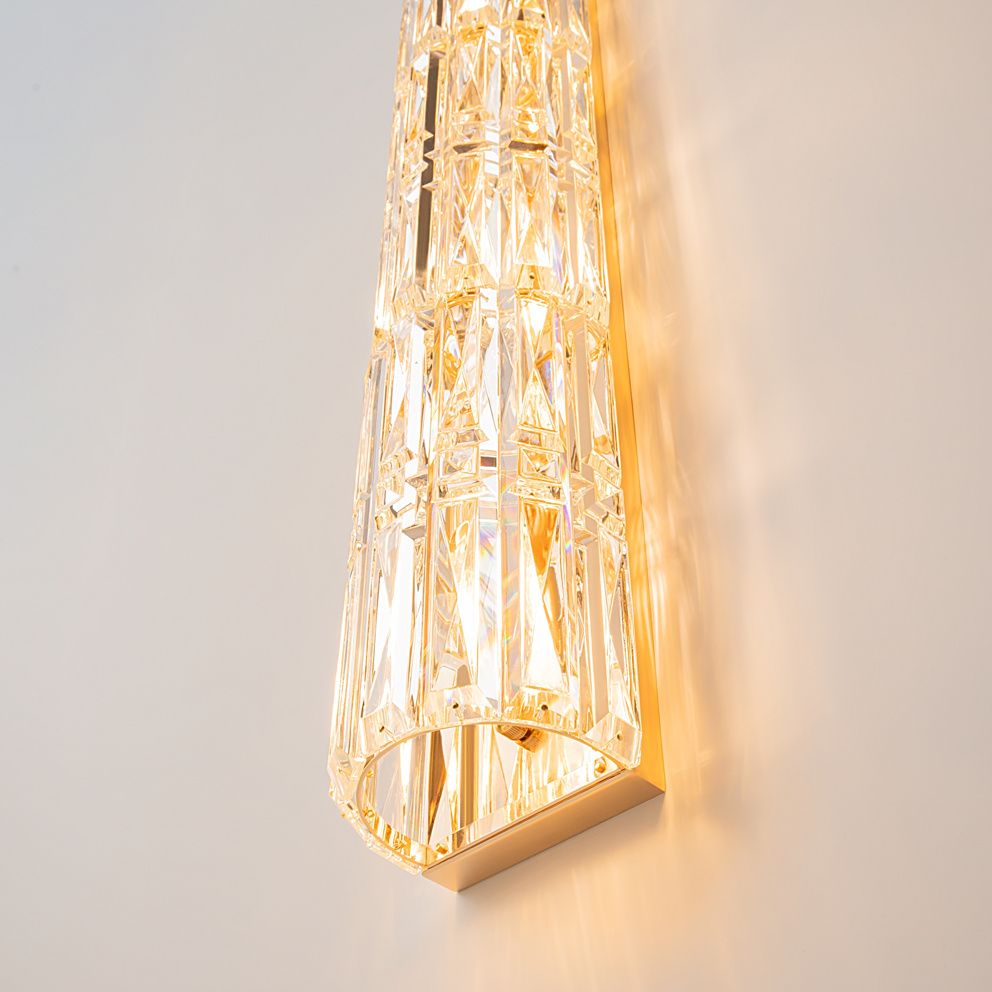 Материал арматуры – металл, оттенки – хром и золото. Декор – прозрачные стек лянные кристаллы. Архитектурная огранка декоративных элементов. Цоколь Е14.