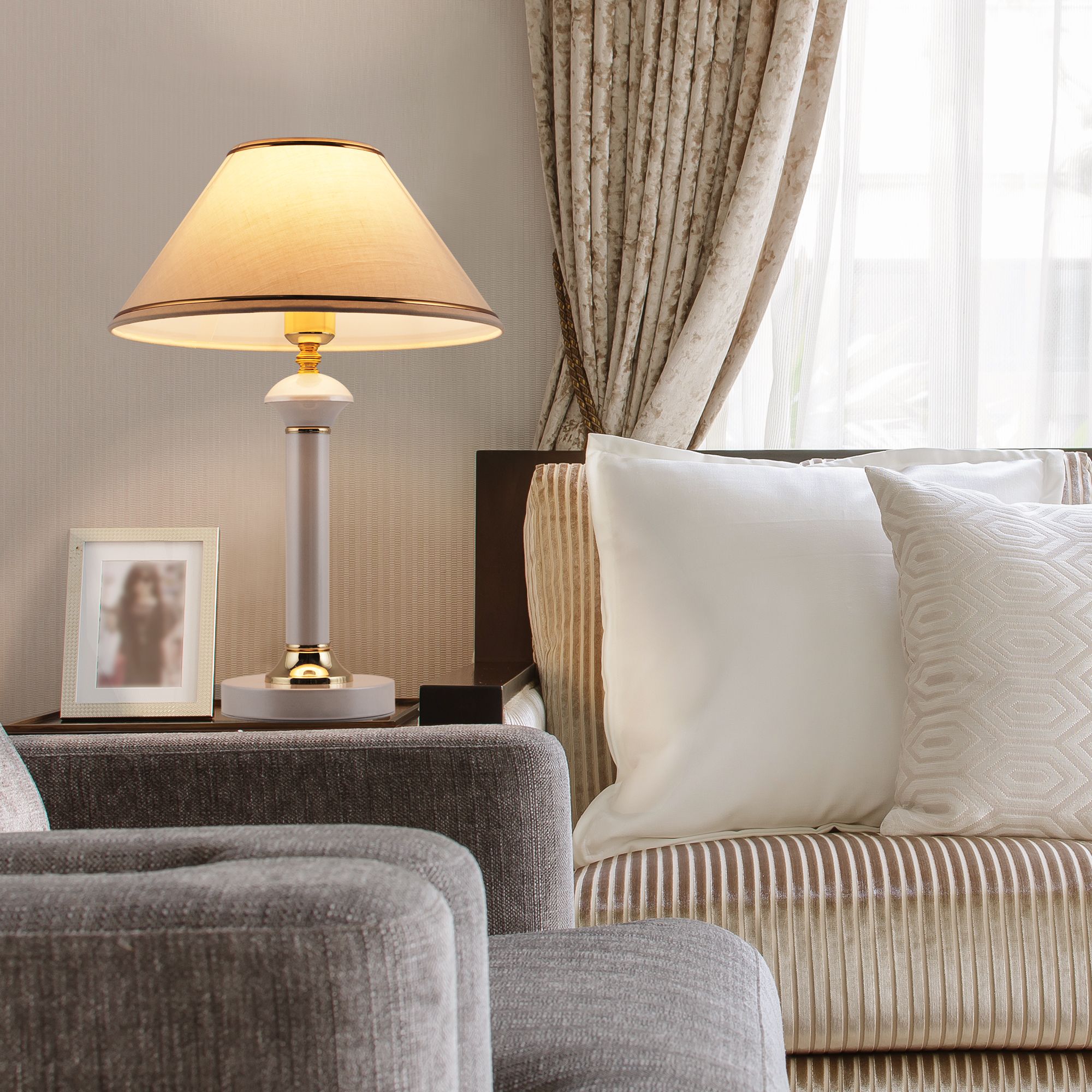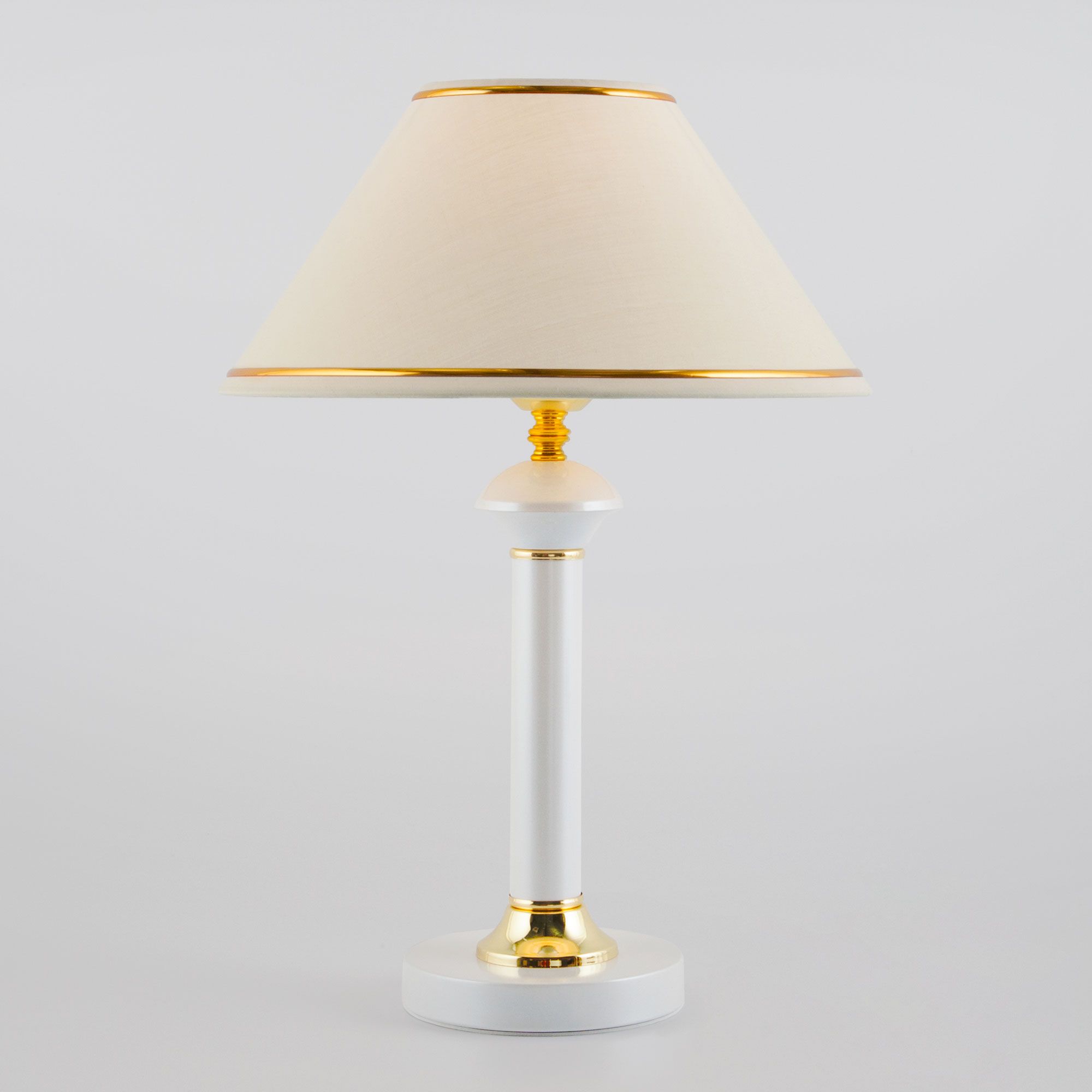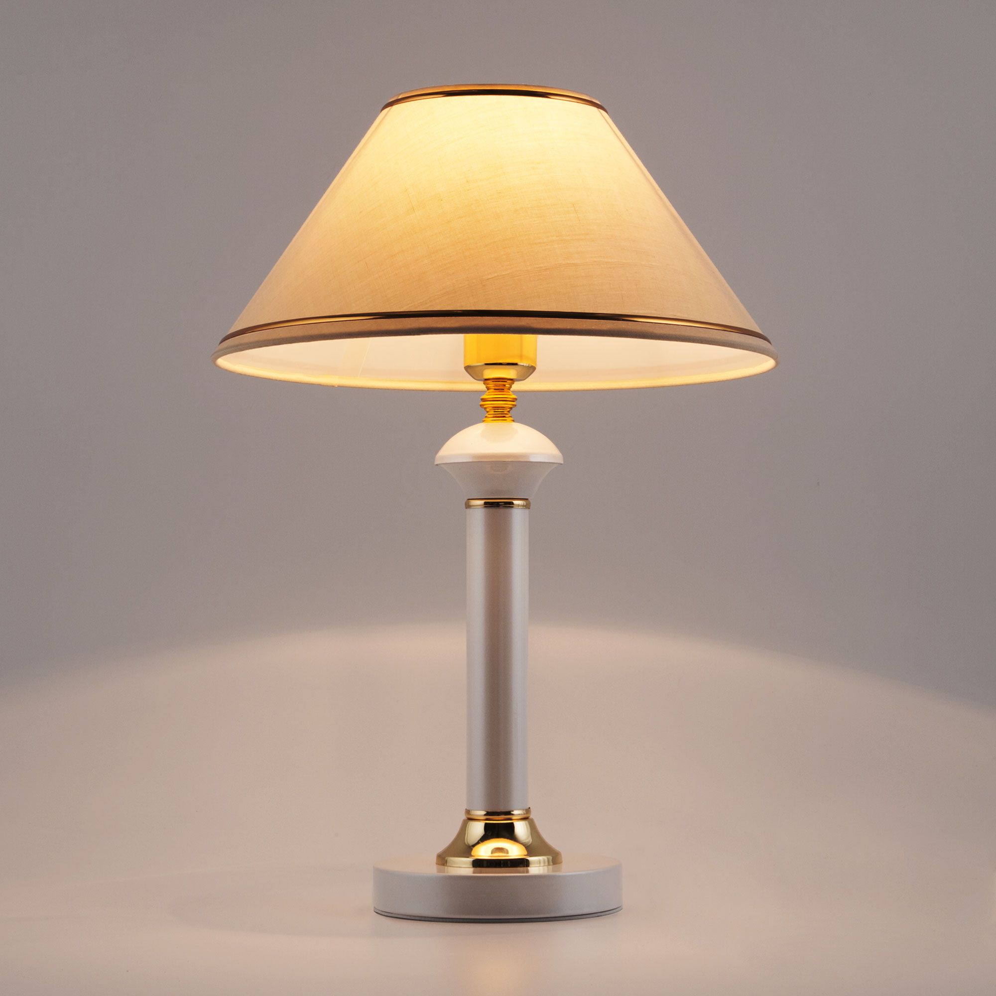 Благодаря бежевому тканевому абажуру настольная лампа создает мягкое рассеянное свечение, подходящее для комфортного чтения книг в вечернее время. Прочный металлический корпус светильника устойчив к механическим воздействиям, а защитное покрытие обеспечивает надежную электроизоляцию и презентабельный внешний вид.