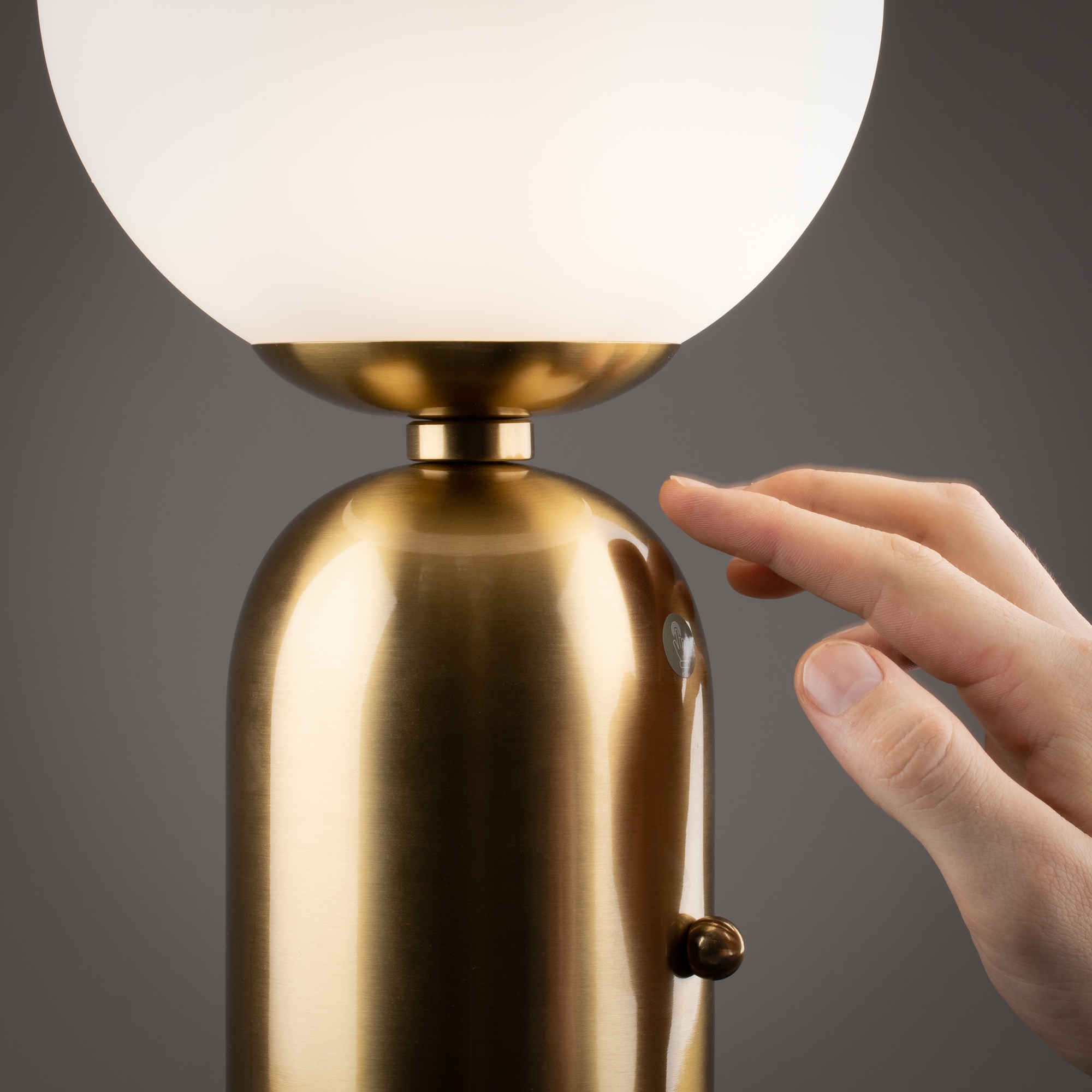 Материал арматуры — металл, цвета — латунь, черный с рисунком под мрамор. Функция Touch позволяет включать и выключать свет. Источник света — лампа с цоколем E14.