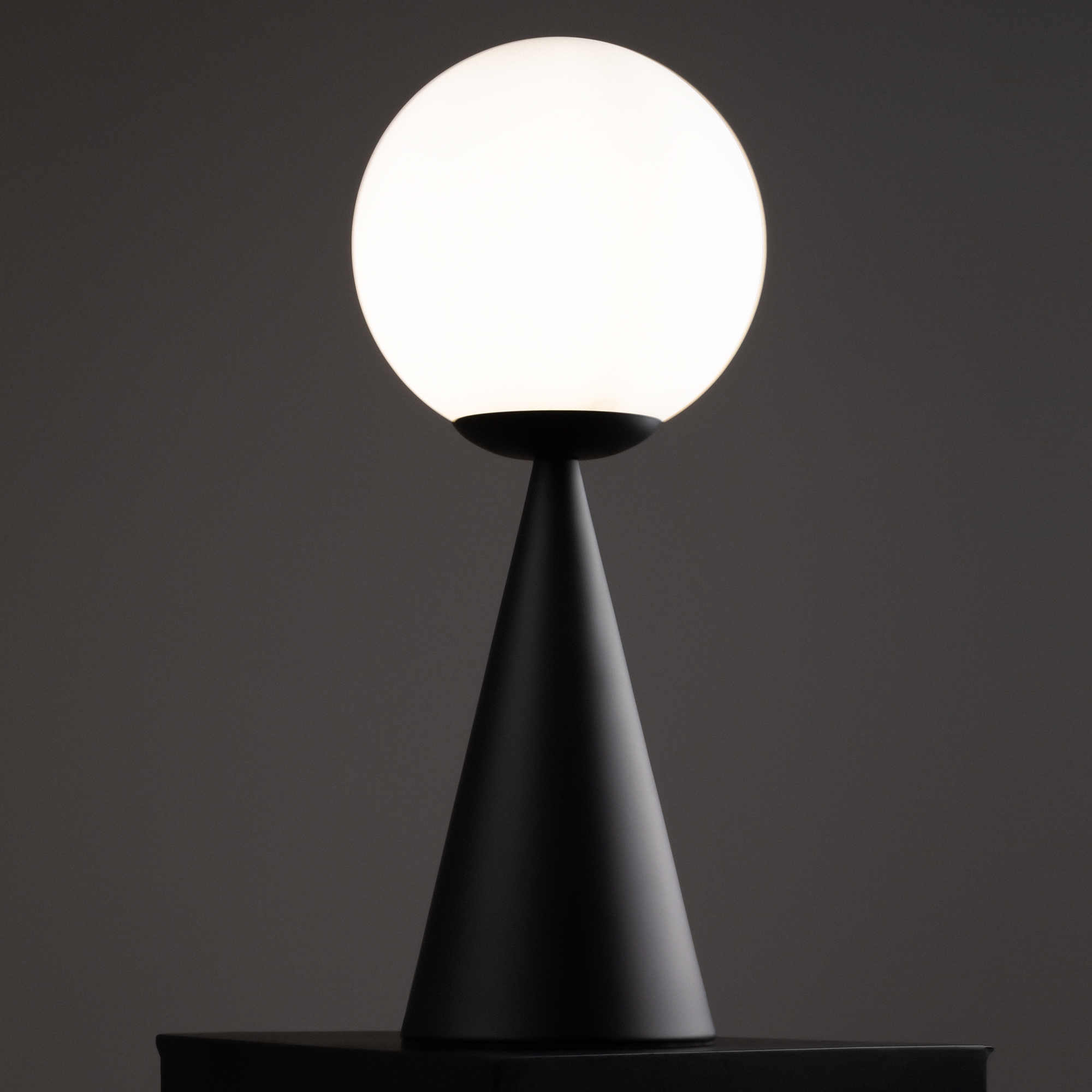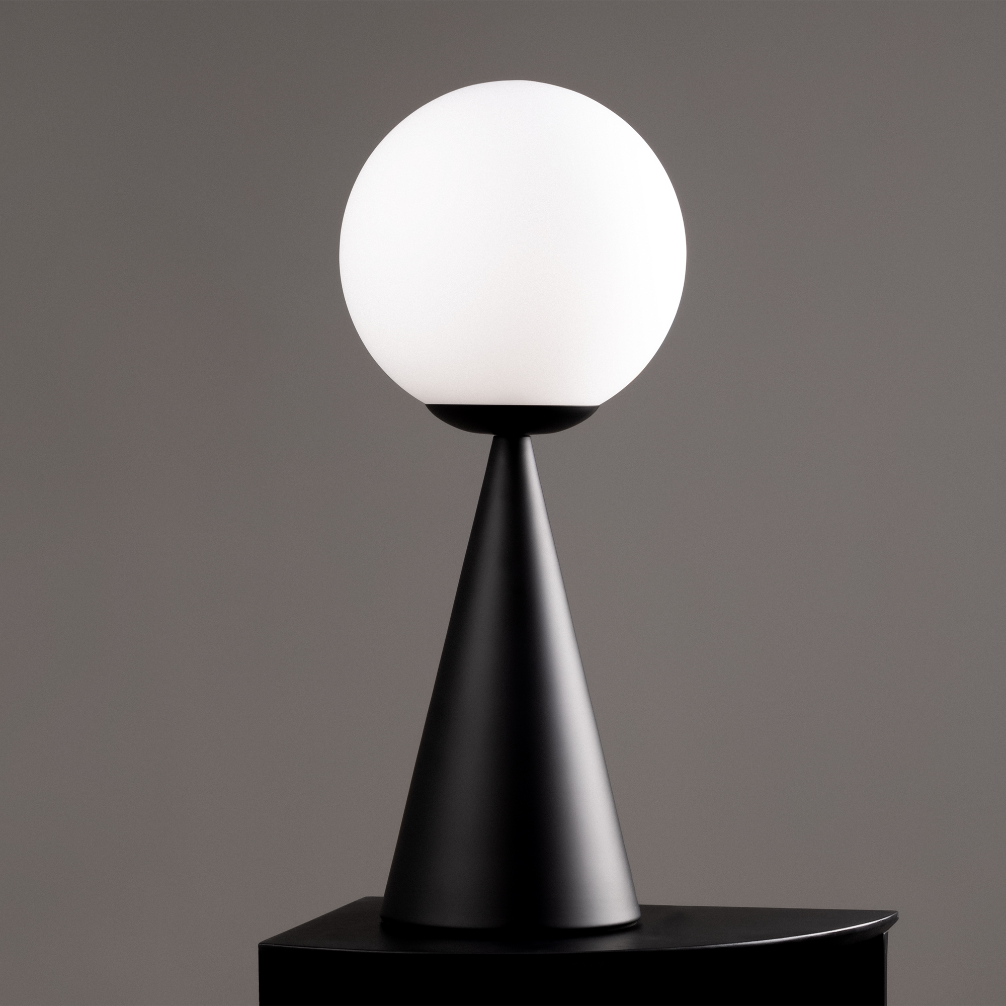 Материал арматуры — металл, цвета - латунь, черный. Плафон-сфера из белого матового цвета. Функция Touch позволяет включать и выключать свет. Источник света - лампа с цоколем Е14.