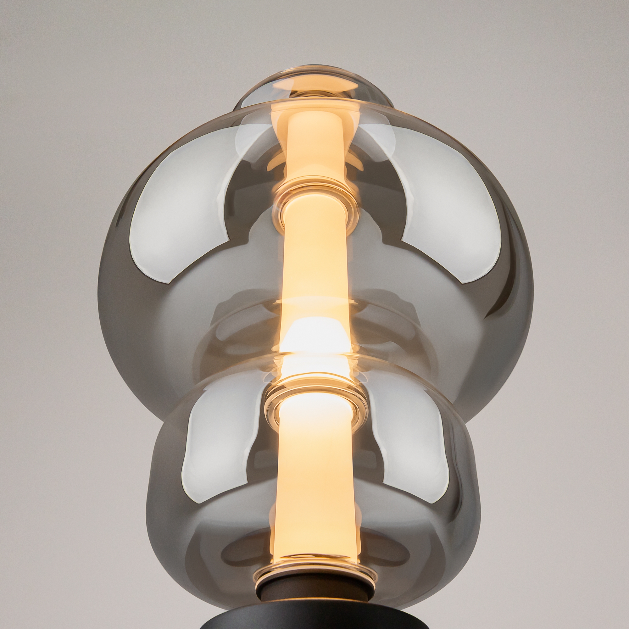 Арматура - металл, цвет - белый, черный. Плафоны окрашены в дымчатый или белый полупрозрачные цвета. В плафон установлен LED-источник света с мощным световым потоком. Цветовая температура — 3000К, угол рассеивания — 120 градусов. Внутренний рассеиватель из полупрозрачного акрила создает мягкое свечение. Предусмотрена функция диммирования: touch-переключатель обеспечивает плавное бесступенчатое управление.