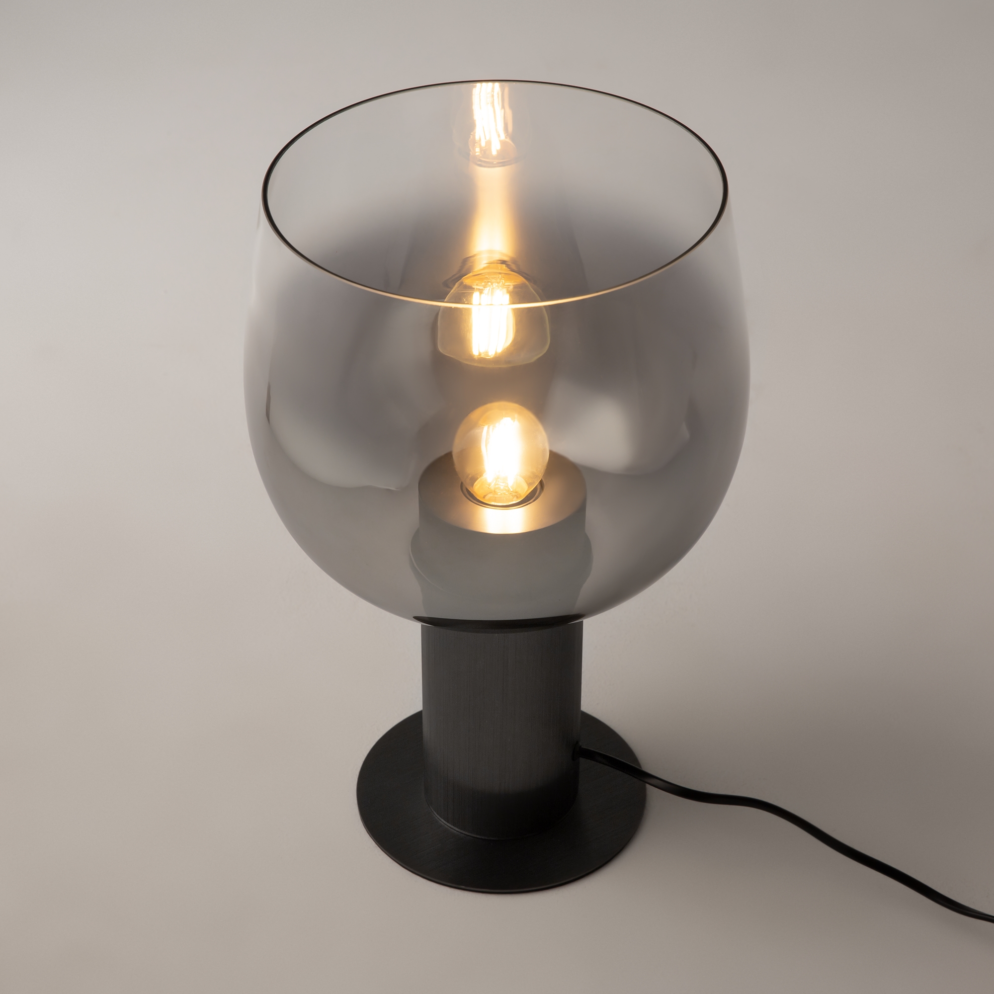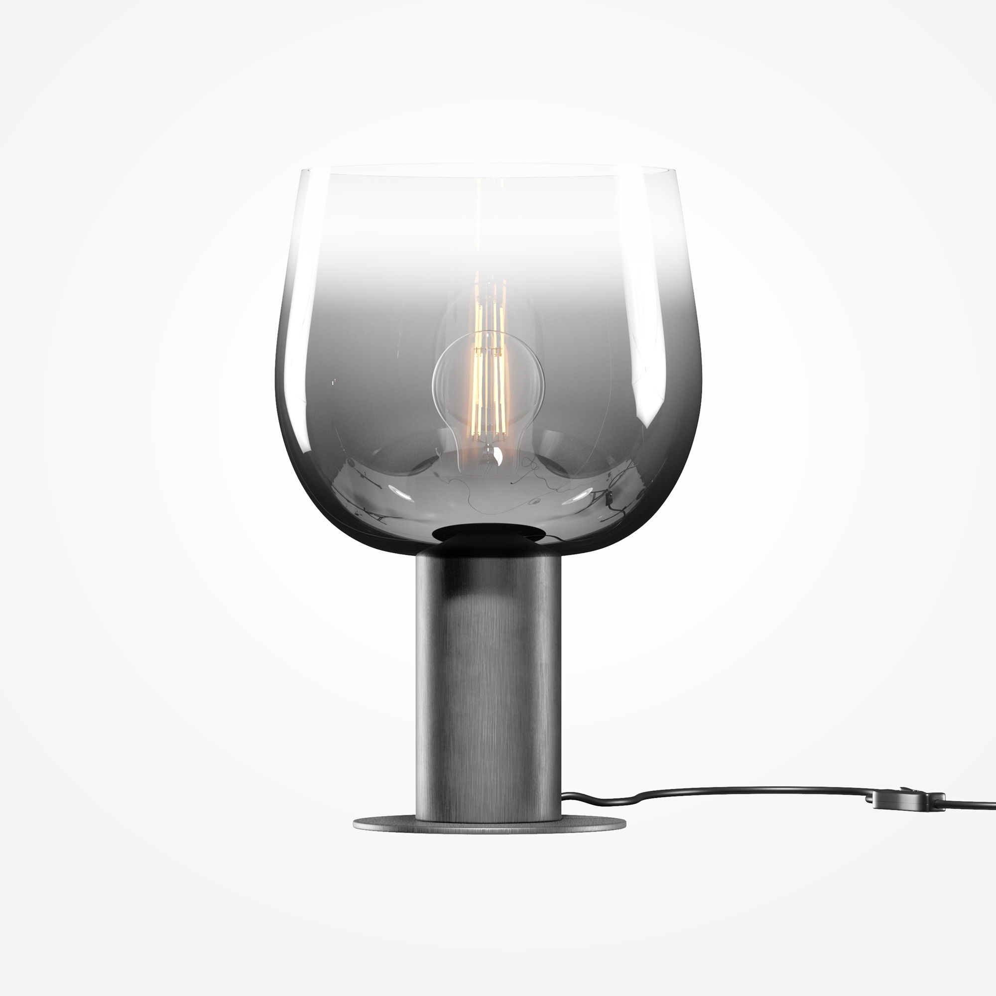 Цветовая гамма: дымчато-серый или насыщенно-янтарный цвет стекла в сочетании с черной или золотой арматурой. В серии есть модели светильников со сменным источником света с цоколем Е27 (каскадная композиция, потолочный и настольные светильники) и LED-источником (одинарные подвесные светильники). Температура свечения LED – 3000 К, угол рассеивания — 120 градусов. Плафоны каскадной композиции плафоны разных размеров и оттенков, установленные на одно основание. Оригинальный декор — актуальный вариант современной классики.