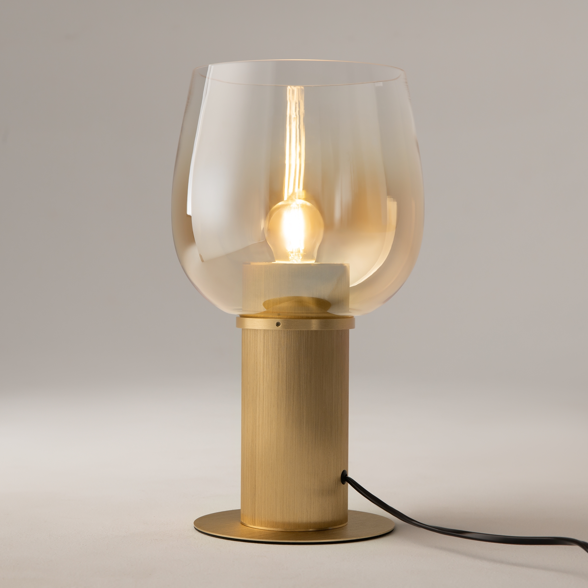 Цветовая гамма: дымчато-серый или насыщенно-янтарный цвет стекла в сочетании с черной или золотой арматурой. В серии есть модели светильников со сменным источником света с цоколем Е27 (каскадная композиция, потолочный и настольные светильники) и LED-источником (одинарные подвесные светильники). Температура свечения LED – 3000 К, угол рассеивания — 120 градусов. Плафоны каскадной композиции плафоны разных размеров и оттенков, установленные на одно основание. Оригинальный декор — актуальный вариант современной классики.