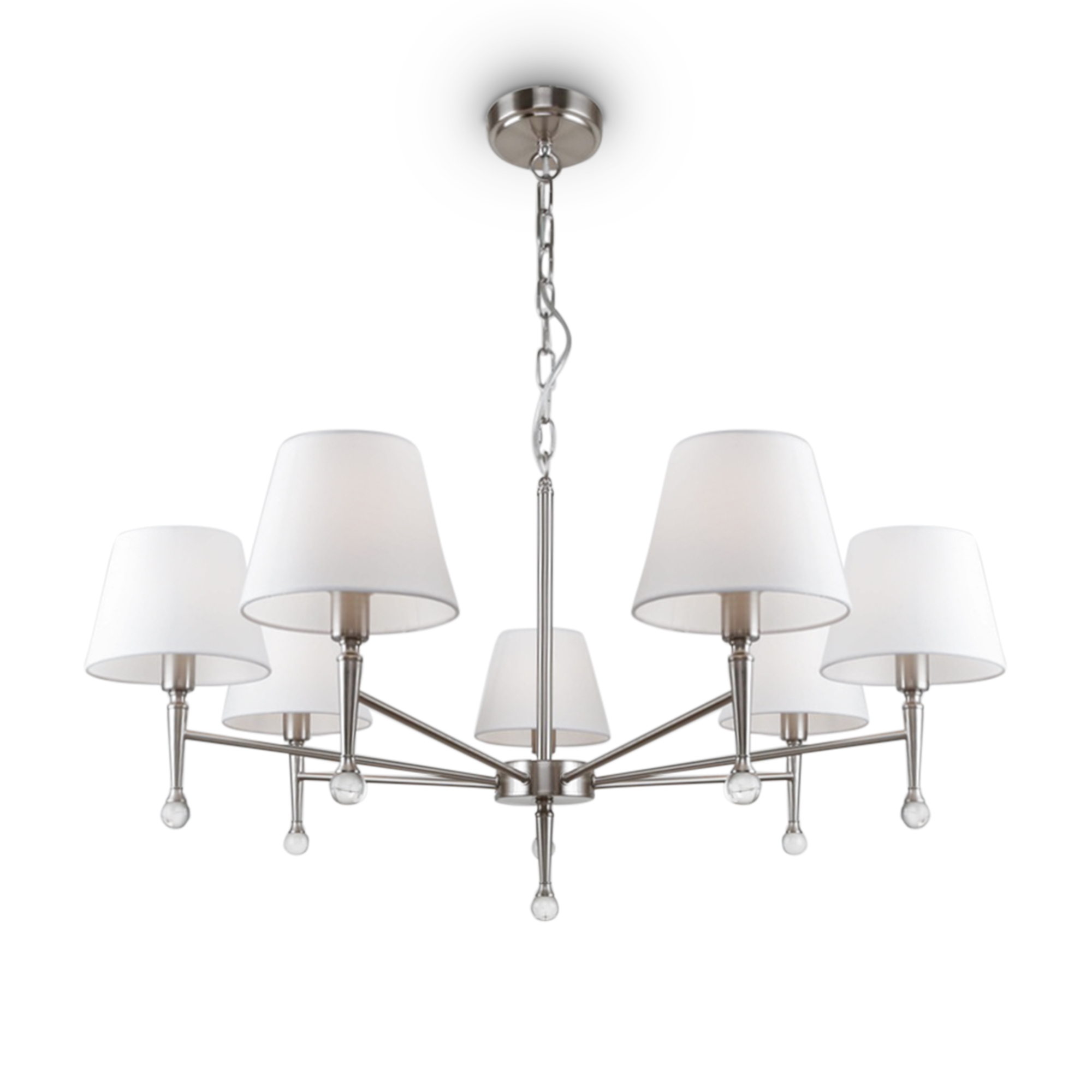 Арматура - металл, плафоны - стекло. Цветовые комбинации арматуры и плафона: черный + прозрачный, черный + янтарный, латунь + прозрачный. Элементы декора - выдувные «бусины» из стекла. Высота проводов регулируется. Источник света - лампа с цоколем GU10.