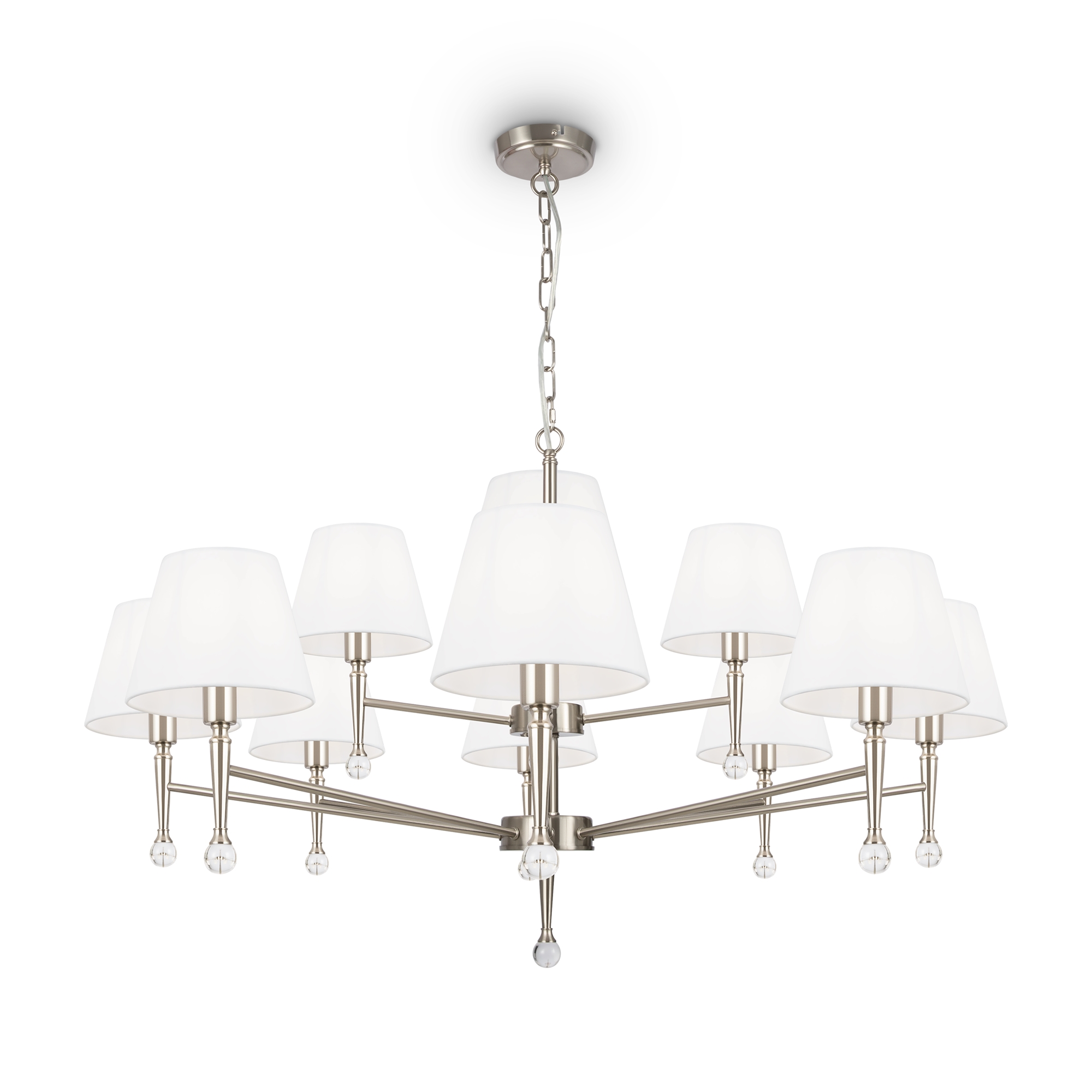 Арматура - металл, плафоны - стекло. Цветовые комбинации арматуры и плафона: черный + прозрачный, черный + янтарный, латунь + прозрачный. Элементы декора - выдувные «бусины» из стекла. Высота проводов регулируется. Источник света - лампа с цоколем GU10.
