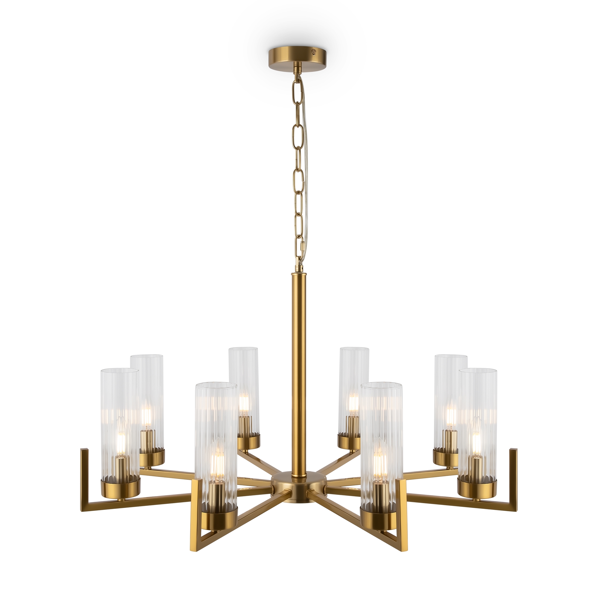 Дизайн на стыке классики и современности, выдержанная эстетика американского стиля в лаконичном исполнении. Adeline – выбор тех, кто ценит традиции. Арматура из металла представлена в оттенках хрома и латуни. Её строгий силуэт подчеркнут минималистичными плафонами-цилиндрами. Граненое стекло с ребристым рисунком – актуальный тренд, создающий модный контраст фактур. Направленные вверх источники света равномерно распределяют световой поток по комнате и визуально приподнимают потолки. В серию входят люстры на 5, 8 ламп и бра – вы можете сформировать комплексный световой сценарий с общим и зональным освещением. Элегантный дизайн актуален для интерьеров в стиле неоклассика, ар-деко, модерн.