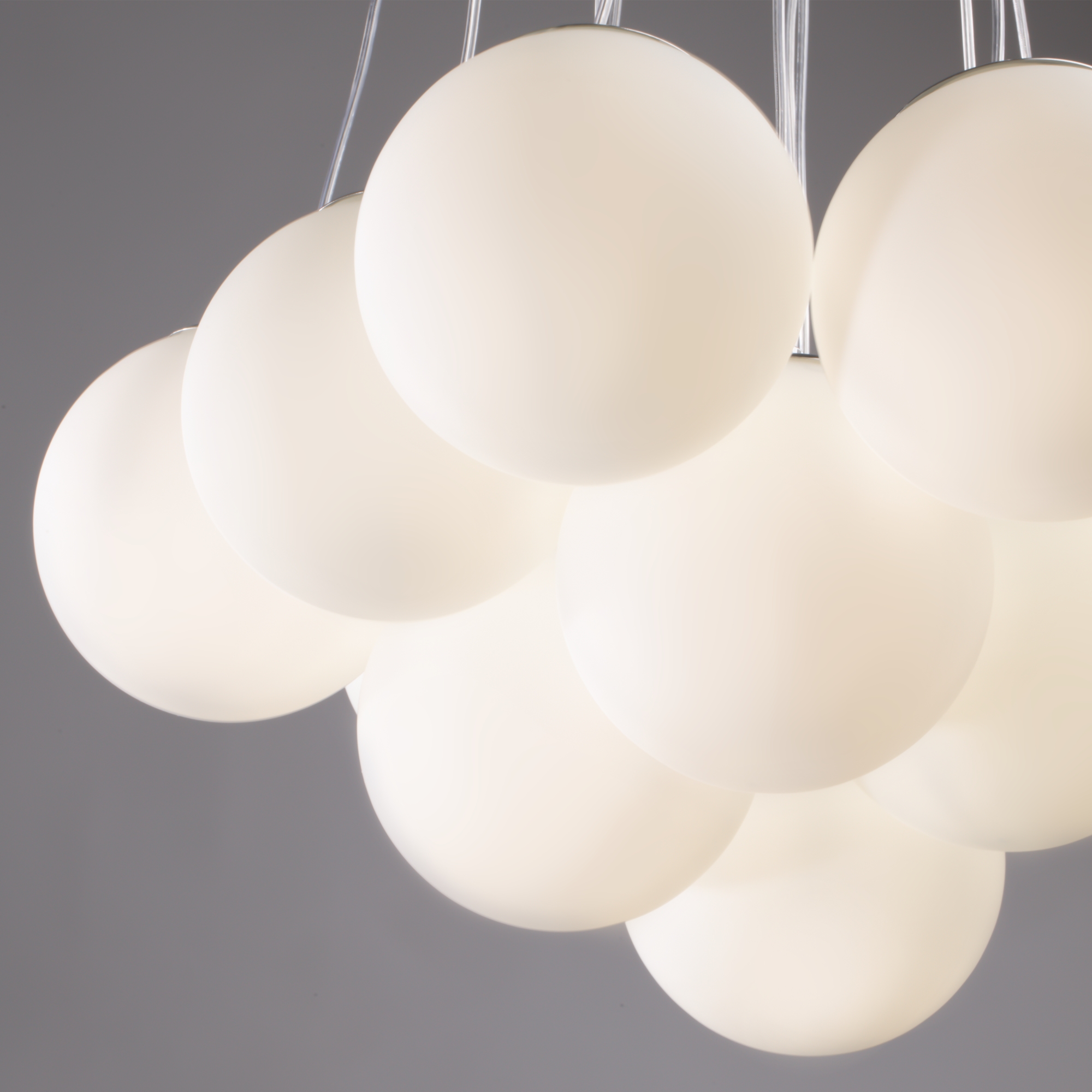 Материал арматуры — металл, цвет — хром/латунь. Подвесные светильники c цоколями E14/E27/G9. Белые стеклянные плафоны с рисунком в виде космических планет крепятся на тонких тросах, которые регулируются по высоте, создавая эффект парящих облаков.