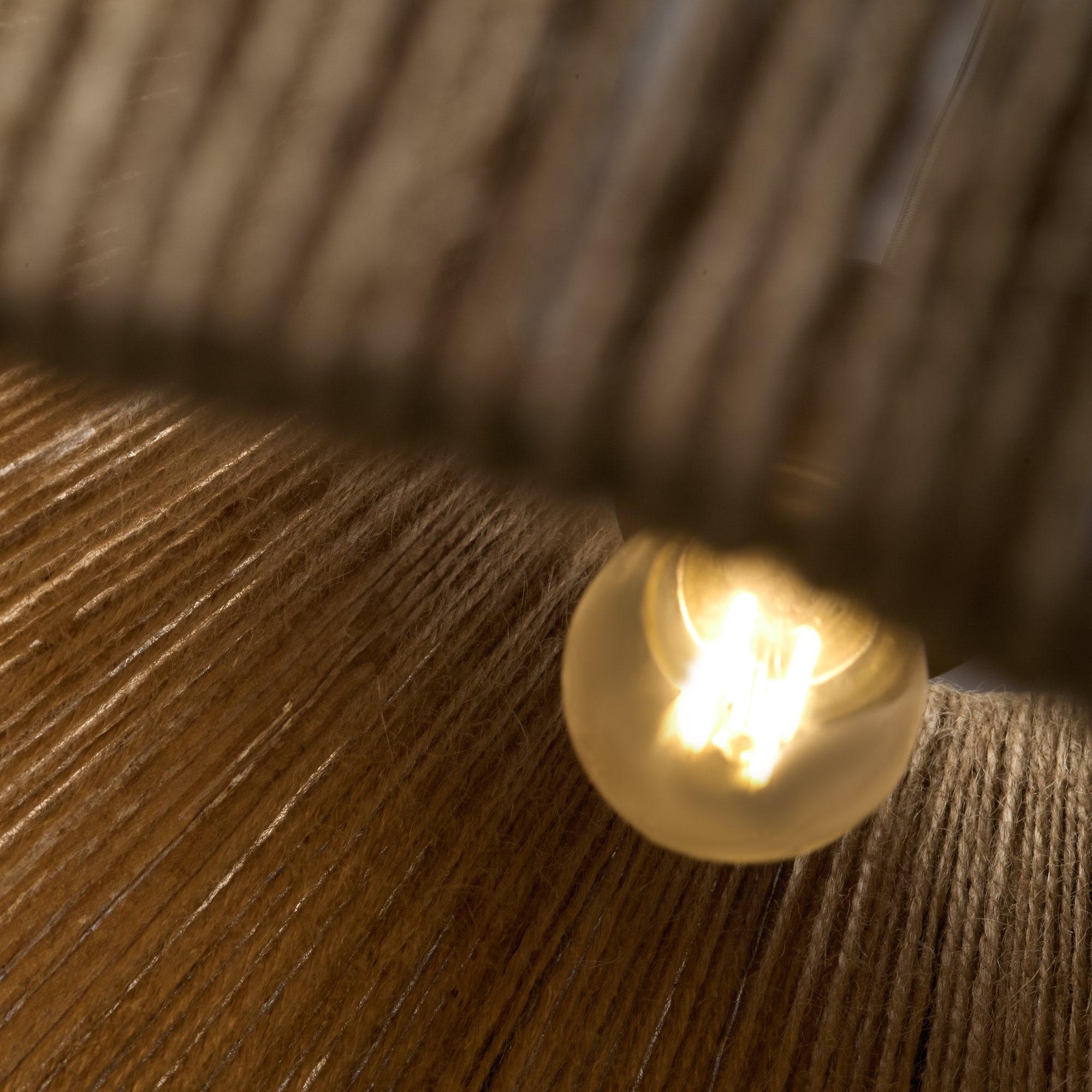 Материал основани чаши - металл, цвет - черный. Абажур из натурального джута - вдохновлен природным шиком плетеной мебели для загородных пространств. Заменяемый источник света - лампы с цоколем Е27. Регулируемый провод.