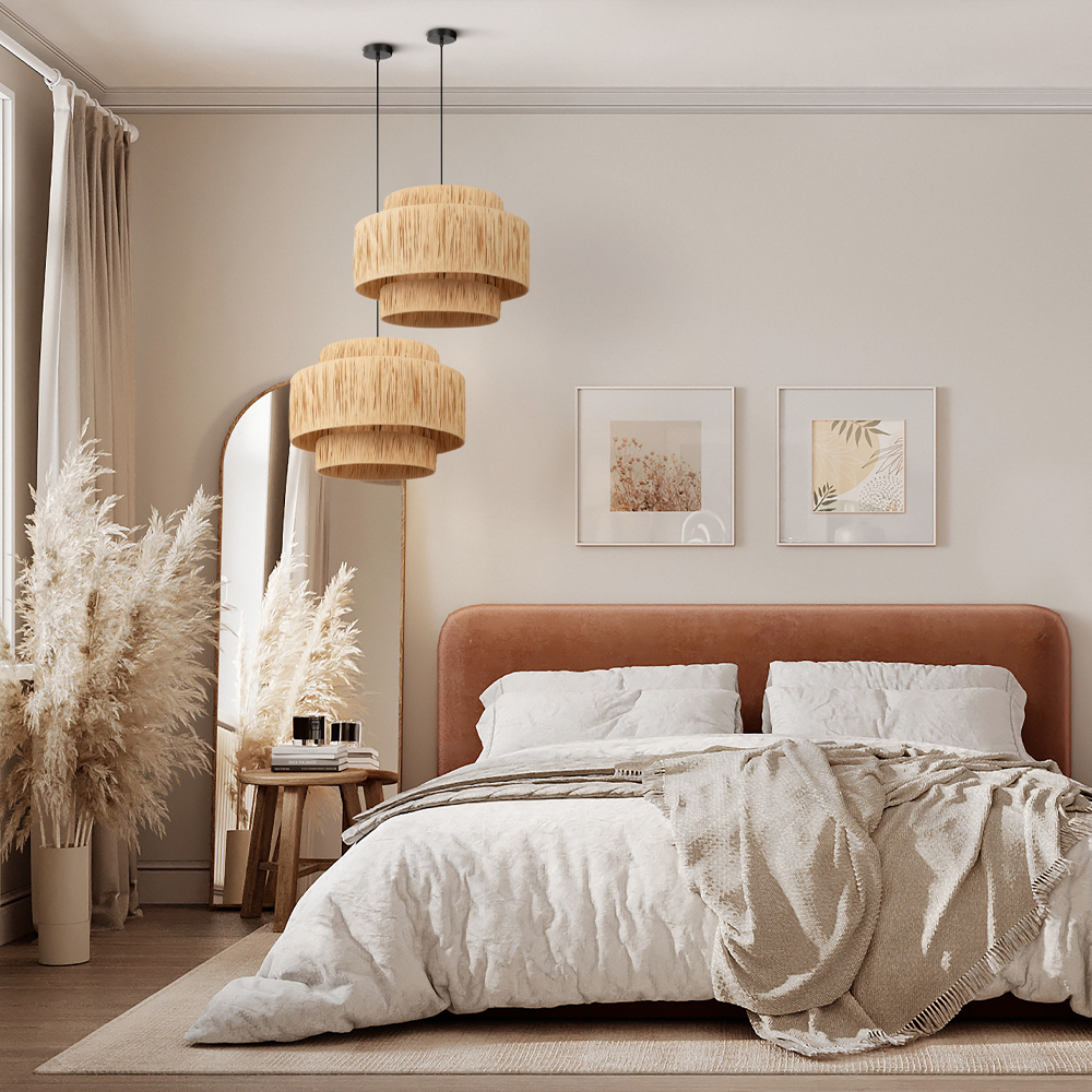 Материал основания - металл, цвет - черный. Абажур выполнен из бумажного шнура. Дизайн вдохновлен тропическими интерьерами в стиле бохо. Светильники окутывают пространство мягким светом, создавая атмосферу спокойствия и легкости. Источник света - лампа с цоколем Е27.