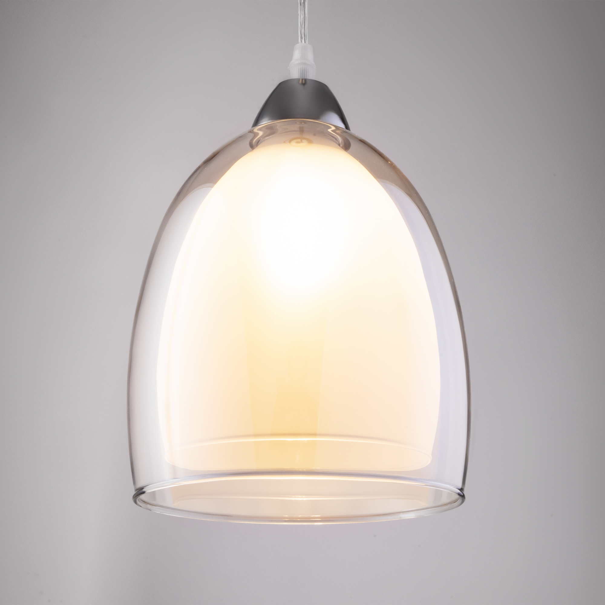 Арматура из металла в цвете хром. Двойные стеклянные плафоны в 3-х оттенках: дымчатый, коньячный, прозрачный. Компактные светильники-каскады в 2-х комбинациях — с одним плафоном и тремя. Высота тросов регулируется. Источник света — лампа с цоколем Е27