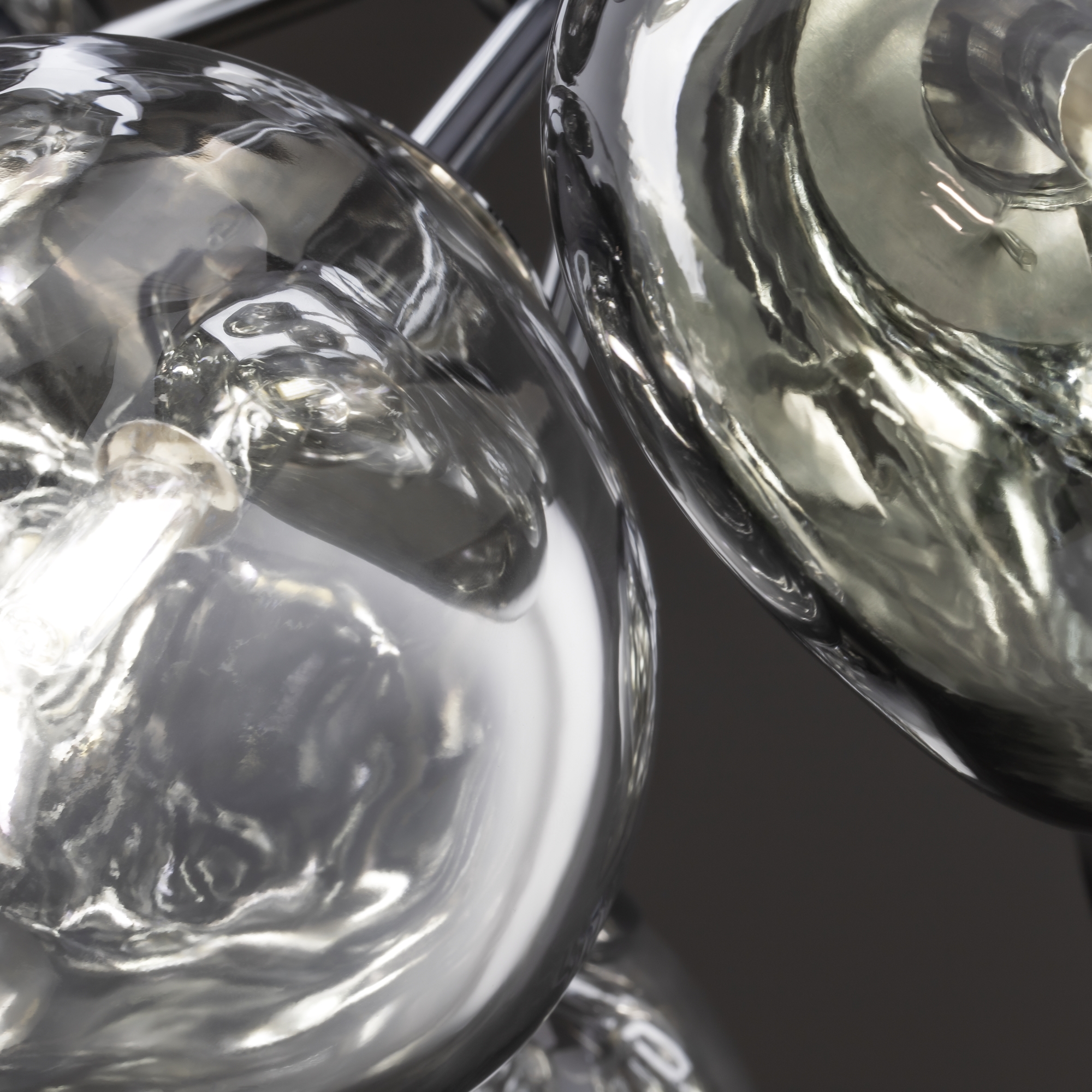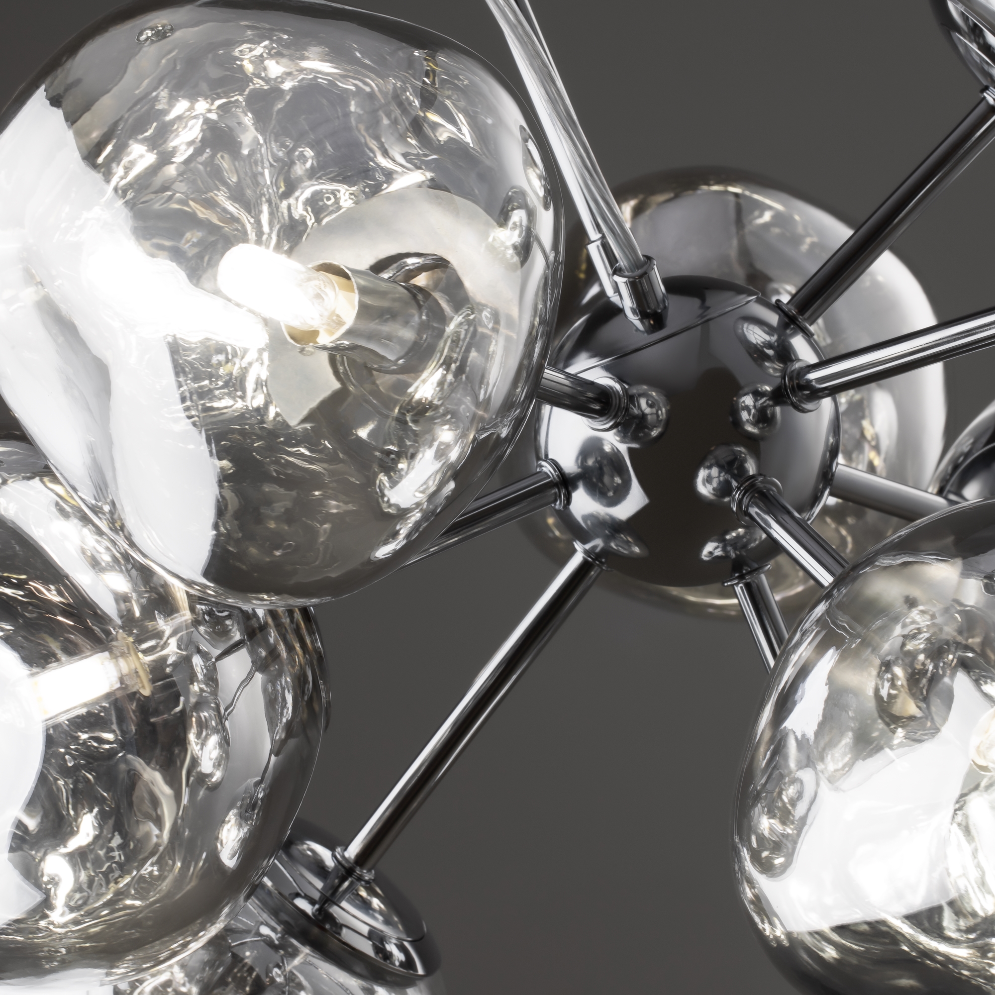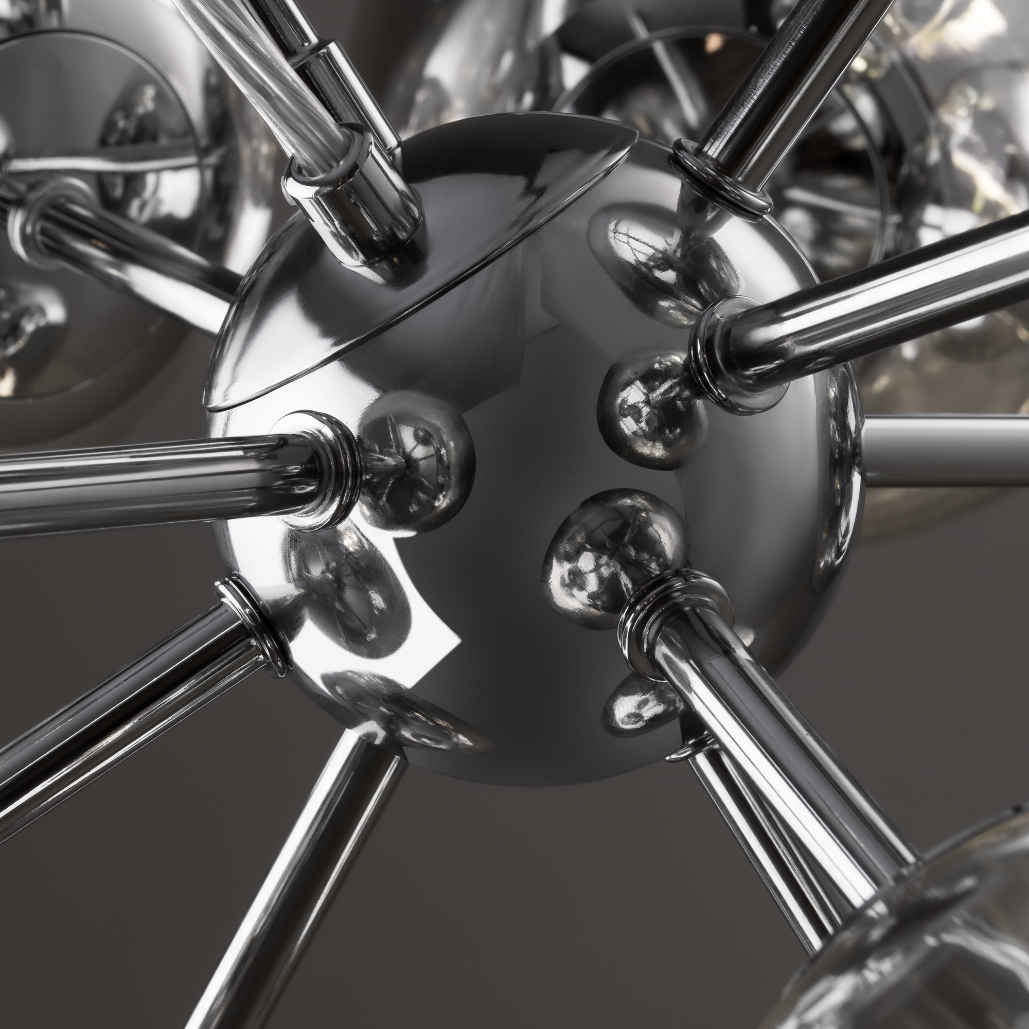Арматура — металл, цвет — хром. Шарообразные плафоны с зеркальным эффектом и переливами. Материал - стекло с серебристым напылением. Источник света — лампа с цоколем — E27.