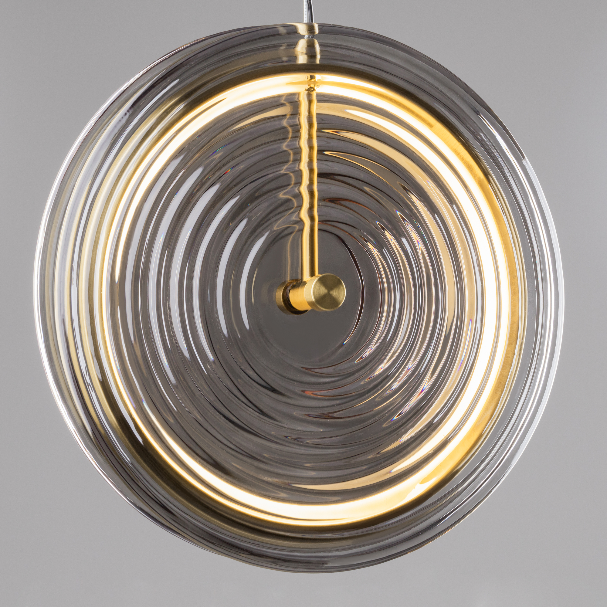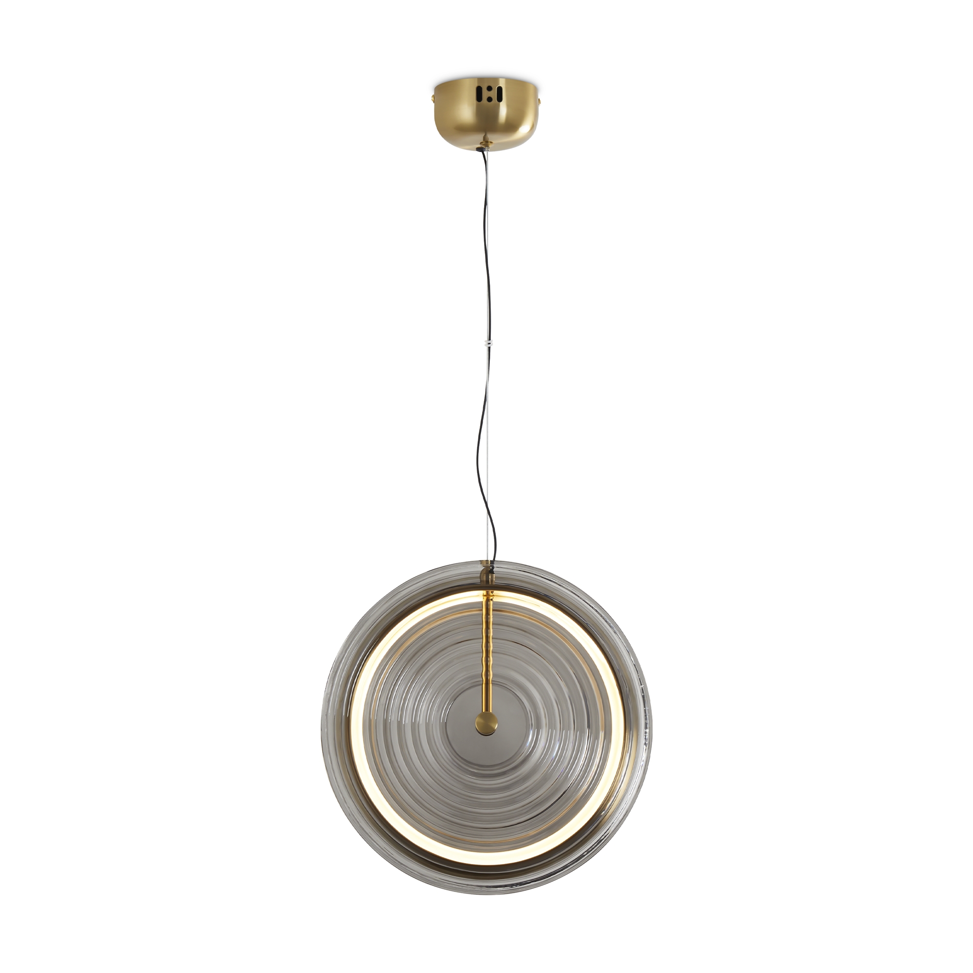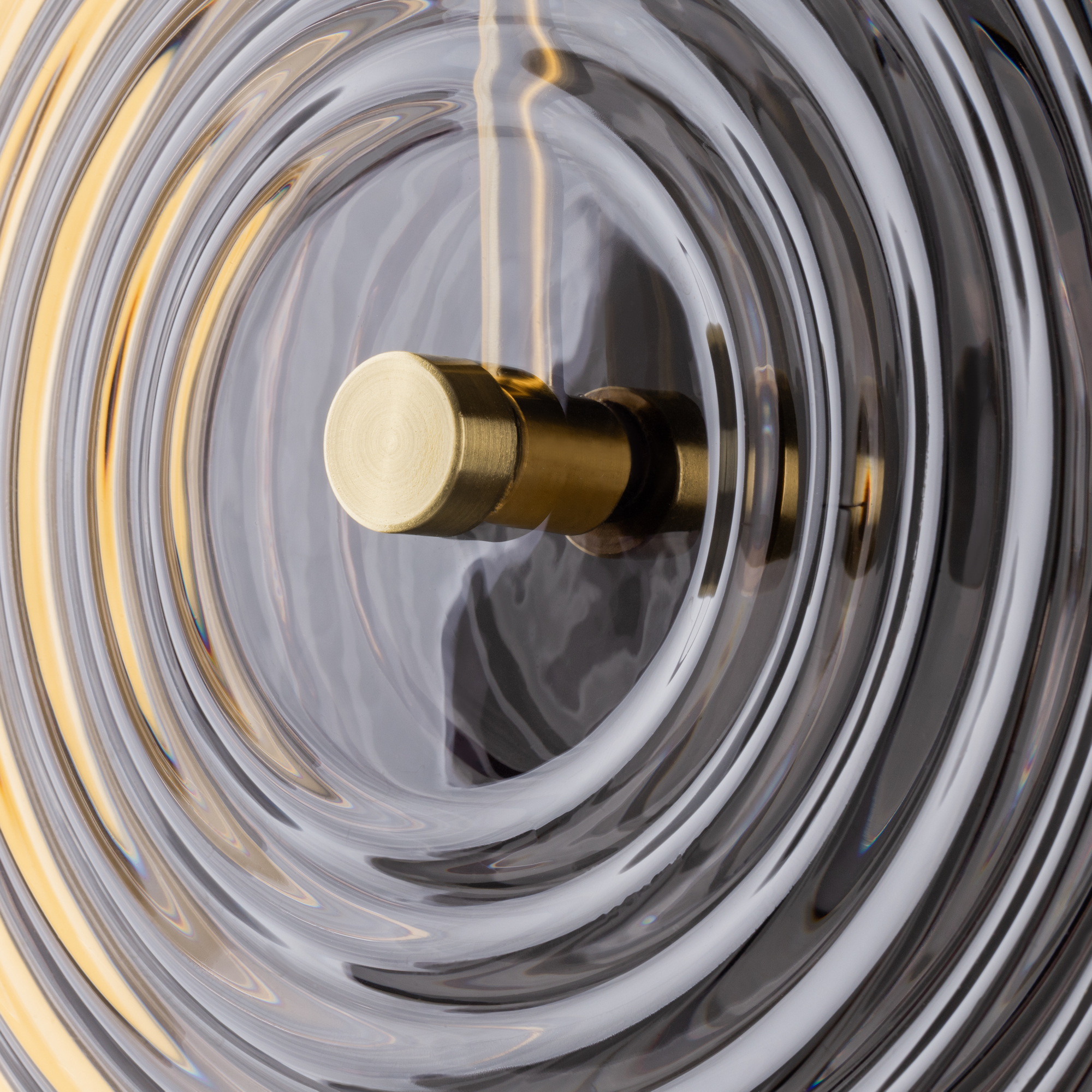 Арматура - металл. Цвет арматуры латунь. Плафоны из стекла в форме леденцов выполнены в четырех цветах: серый, зеленый, прозрачный и желто-оранжевый. Широкий спектр типов светильников: торшеры, настенные бра и подвесы. LED источник света. Цветовая температура 3000К.