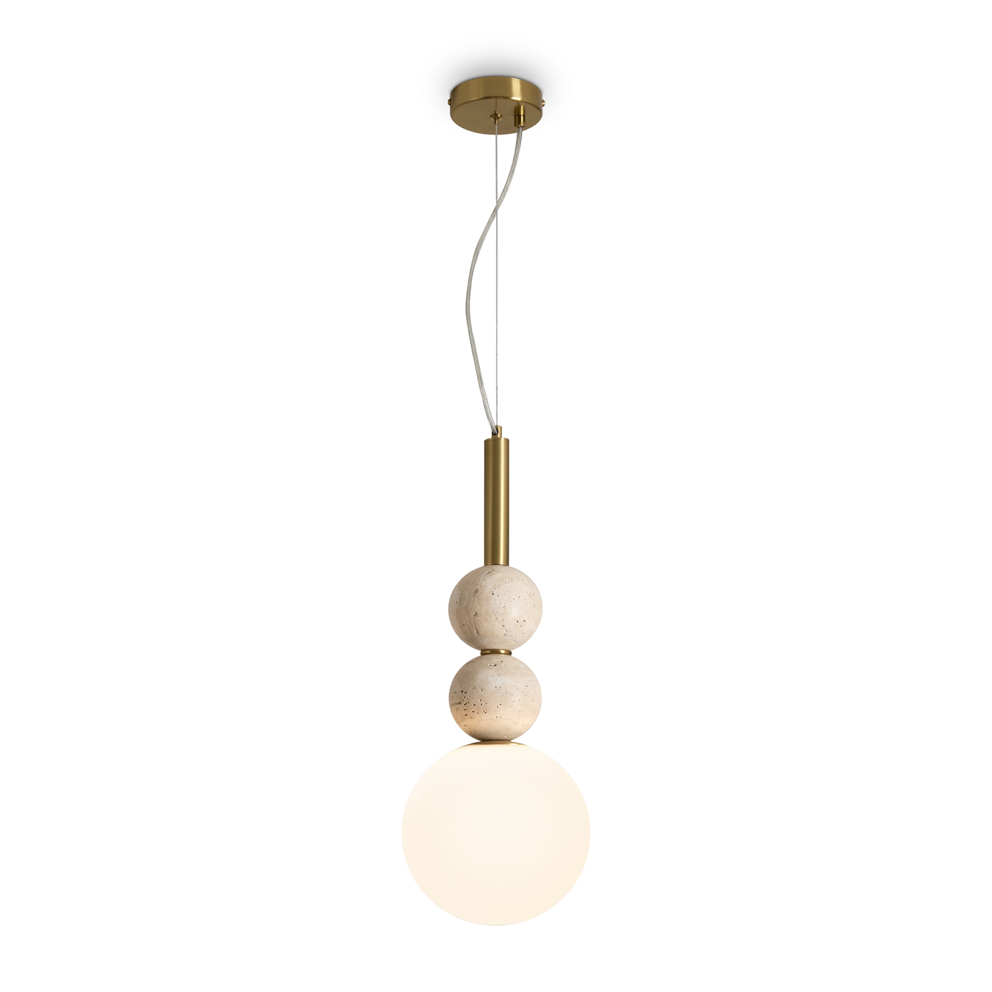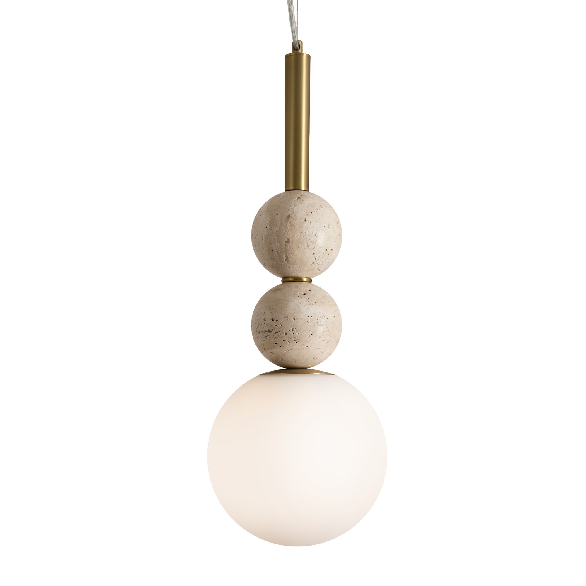 Серия Sunspot использует камень травертин как основной декоративный элемент. Настенные бра в двух вариантах: с матовым белым стеклянным плафоном и со «скользящим» теплым светом. Отличительная черта бра: увеличенный размер плафона и сенсорное включение/выключение без диммирования. Подвесные светильники имеют прозрачные стеклянные плафоны с декоративными шариками из камня травертин. Sunspot включают три модели подвесов разных размеров и форм стеклянной окантовки на плафон. Арматура — металл латунного и черного цвета Источники света LED 3000K и цоколь G9. Настольная лампа с touch переключателем . Серия создает комплексное зональное и акцентное освещение, подходящее для создания уютной атмосферы.