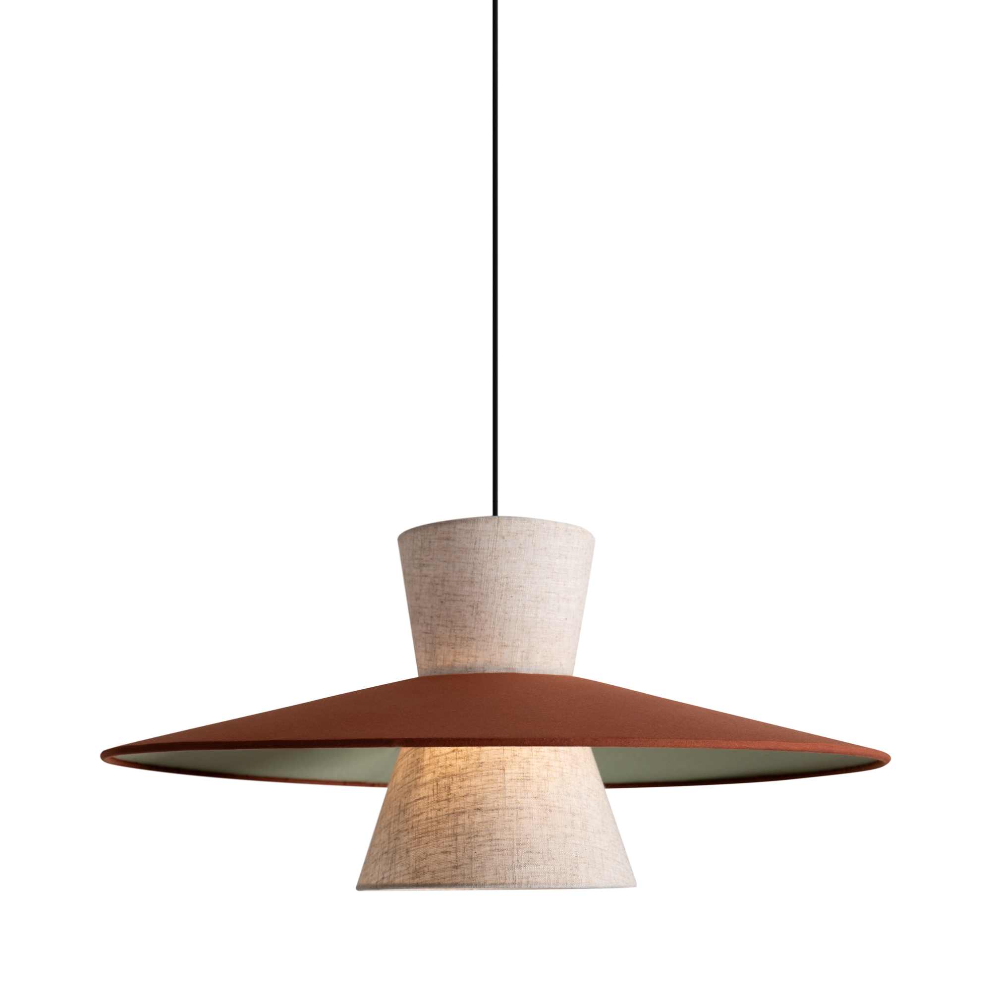 Серия Fly представлена тканевыми подвесными светильниками трендовых цветов. Плафоны выполнены из ткани в двух вариантах: комбинация бежевого, зеленого и терракотового цветов, а также полностью бежевый из натурального льна. Размер светильников: диаметр 500 мм, высота 1000 мм. Арматура — металл черного цвета. Цоколь E14, рассчитан на лампу мощностью до 40 Вт. Дизайн сочетает современные цветовые тренды 2024-2025 года с использованием натуральных материалов, создавая яркий акцент в интерьере.