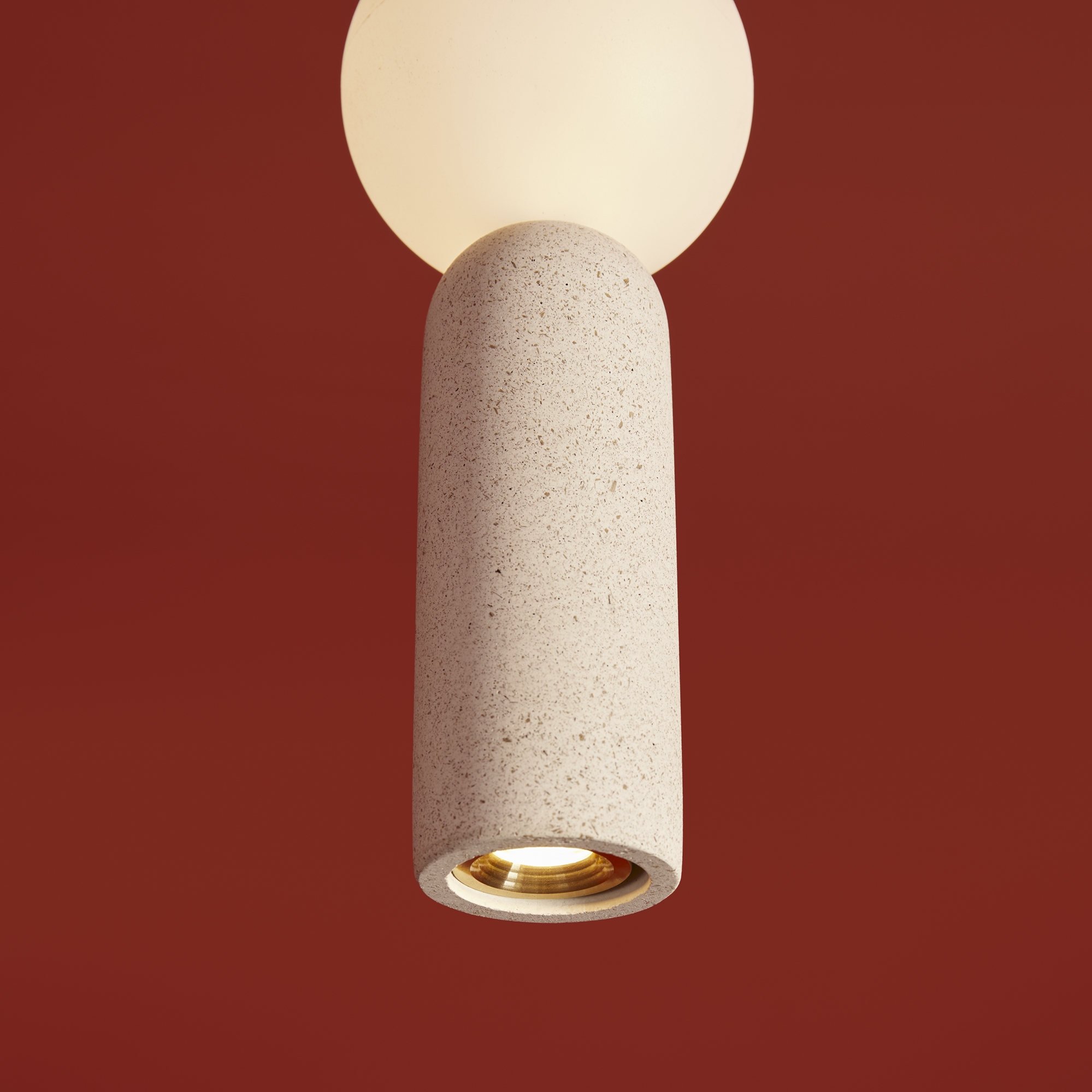Материал арматуры — металл белого цвета, плафоны выполнены из светлого микроцемента. Светильники представлены в двух версиях: со встроенным LED-источником освещения с цветовой температурой 2700К, а также с цоколем E27. Минималистичный дизайн в белом цвете идеально подходит для современных интерьеров в стиле лофт или скандинавском стиле.