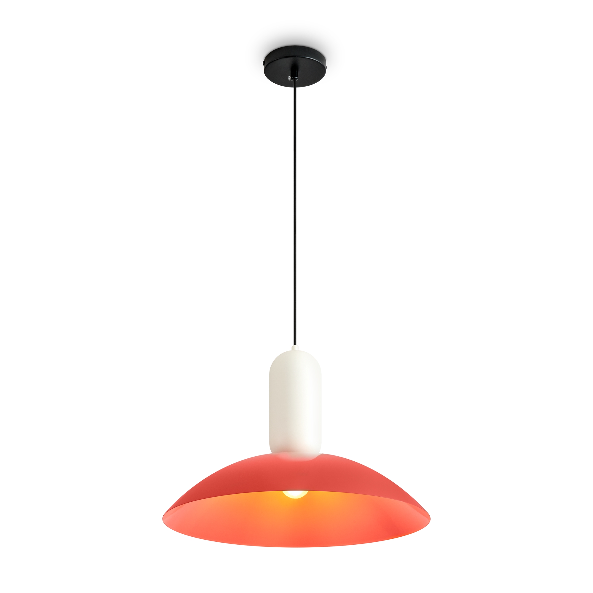 Арматура - чёрный металл.Каждый подвесной светильник окрашен в 2 цвета: серо-бежевый и жемчужно-белый, каменно-серый и белый, белый и каменно-серый. з новинки в сочетниях новых оттенков - чисто красный и мята бирюзовая.