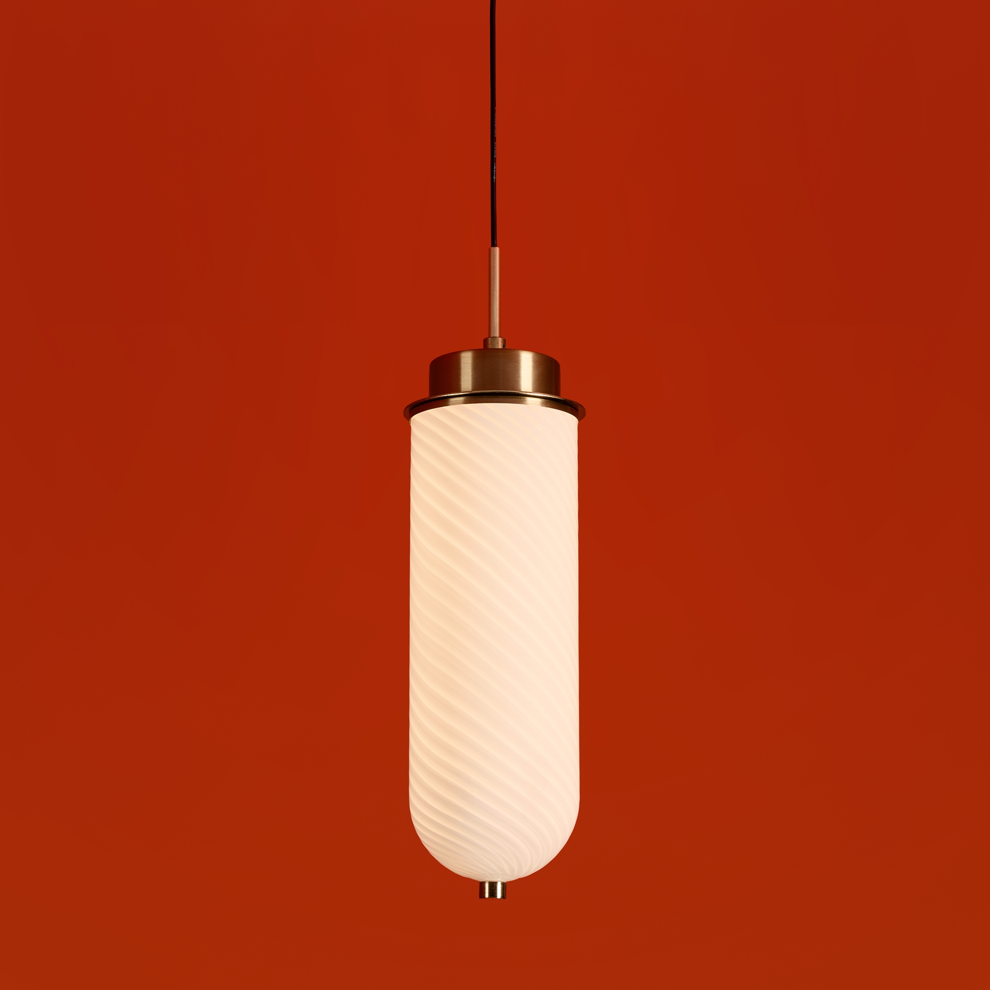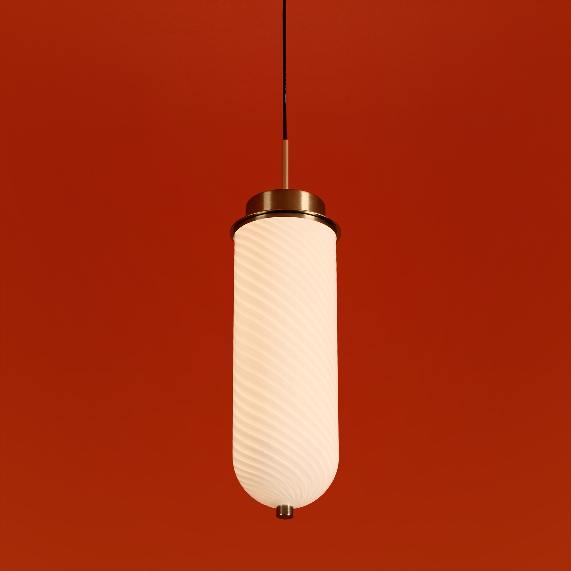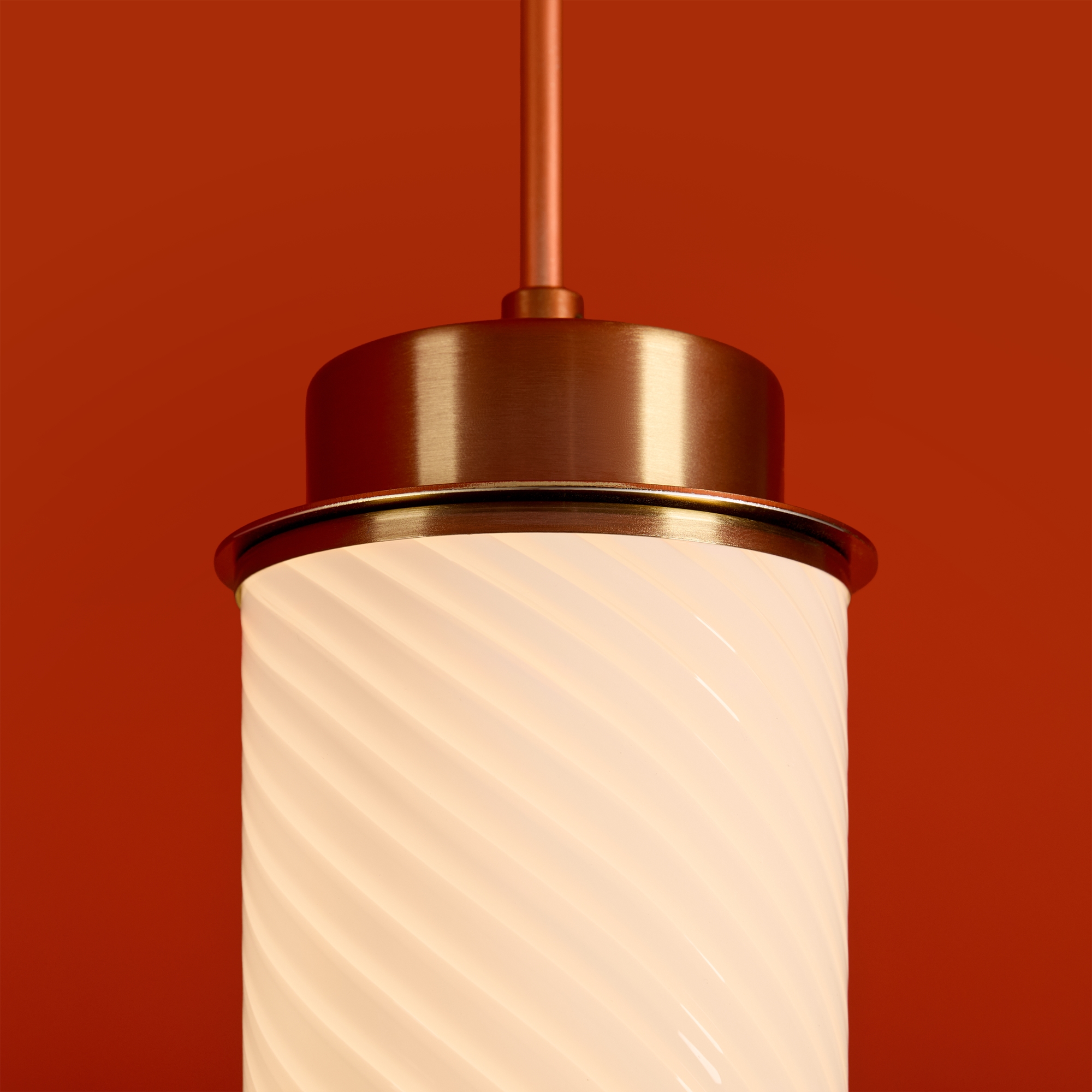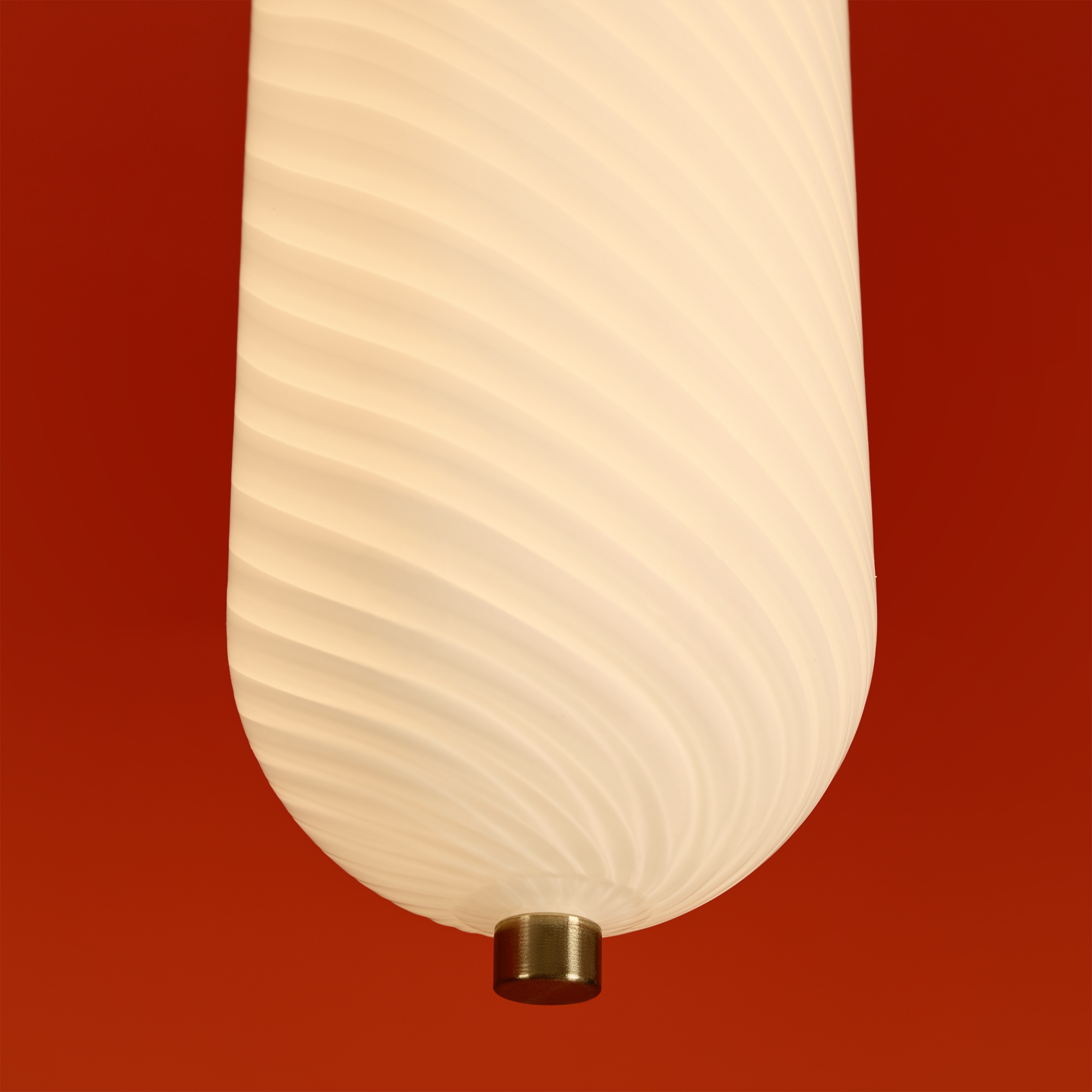 Арматура — металл. Стеклянные плафоны с имитацией мрамора и полосками в ретро-стиле. Интегрированный LED источник света 2700К, угол рассеивания 360°. Высота регулируется.