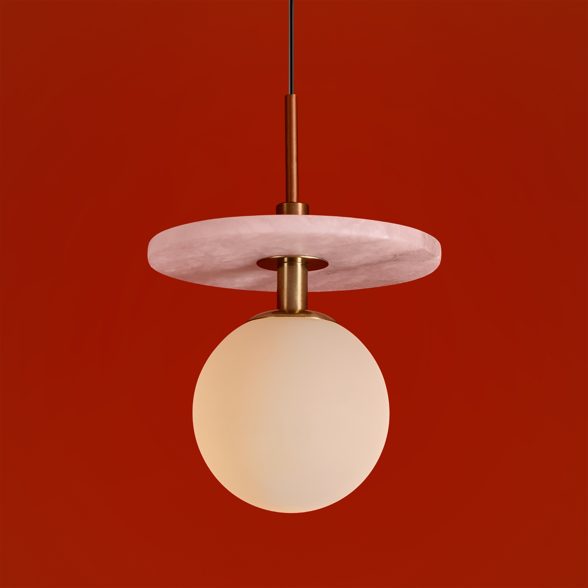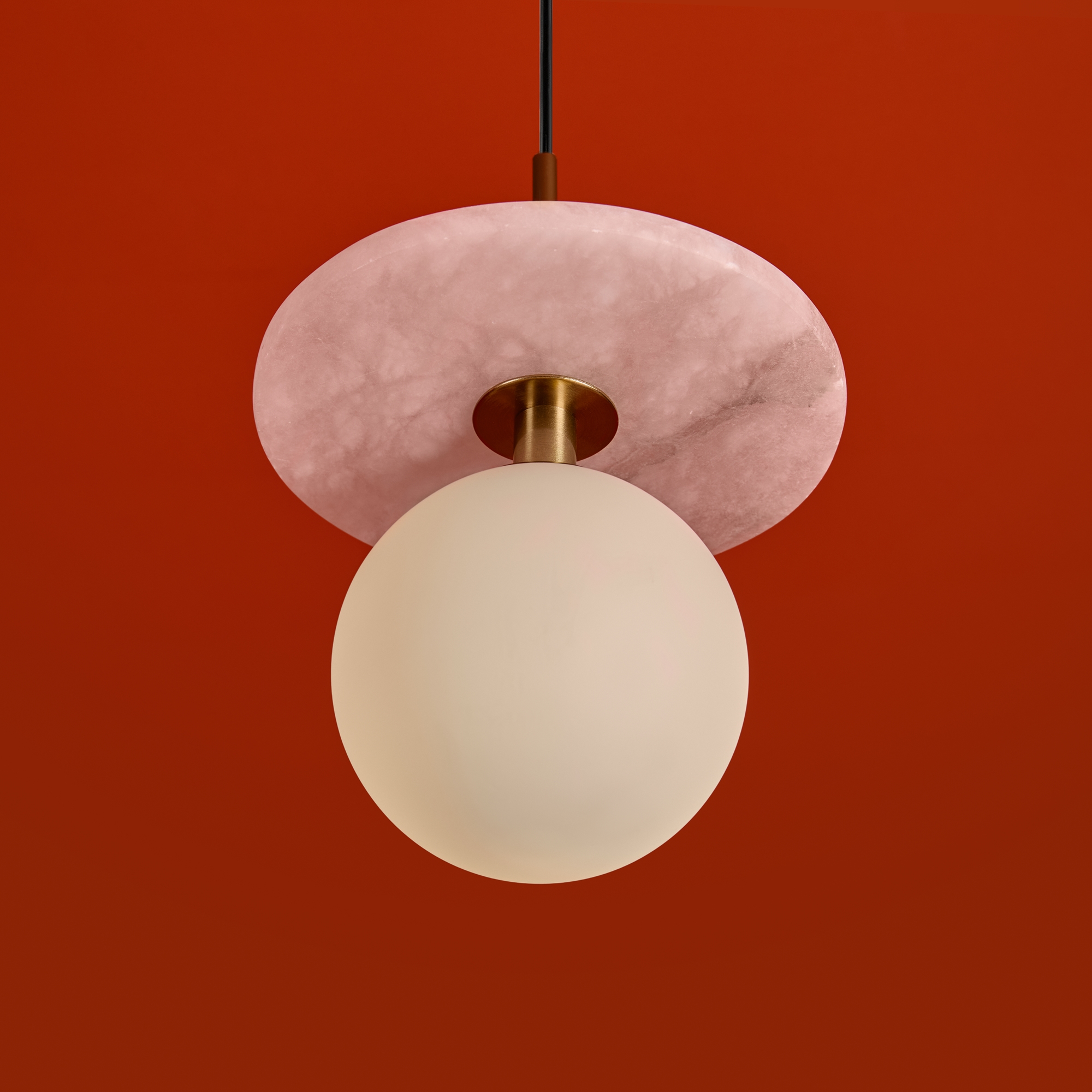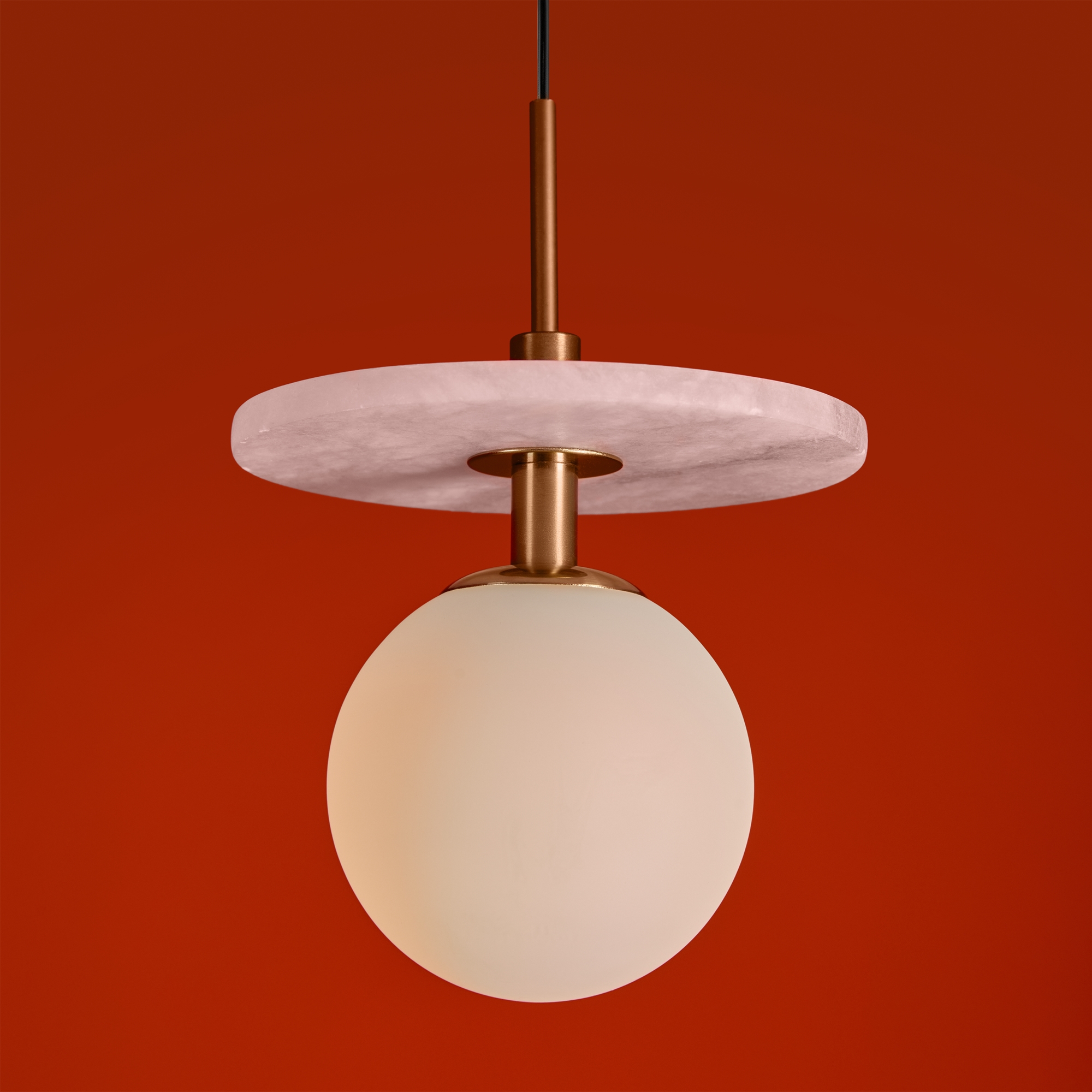 Арматура — металл. Плафоны из алебастра/камня и матового белого стекла. Версии с лампами G9 (не в комплекте) и с LED источником света. Высота регулируется.