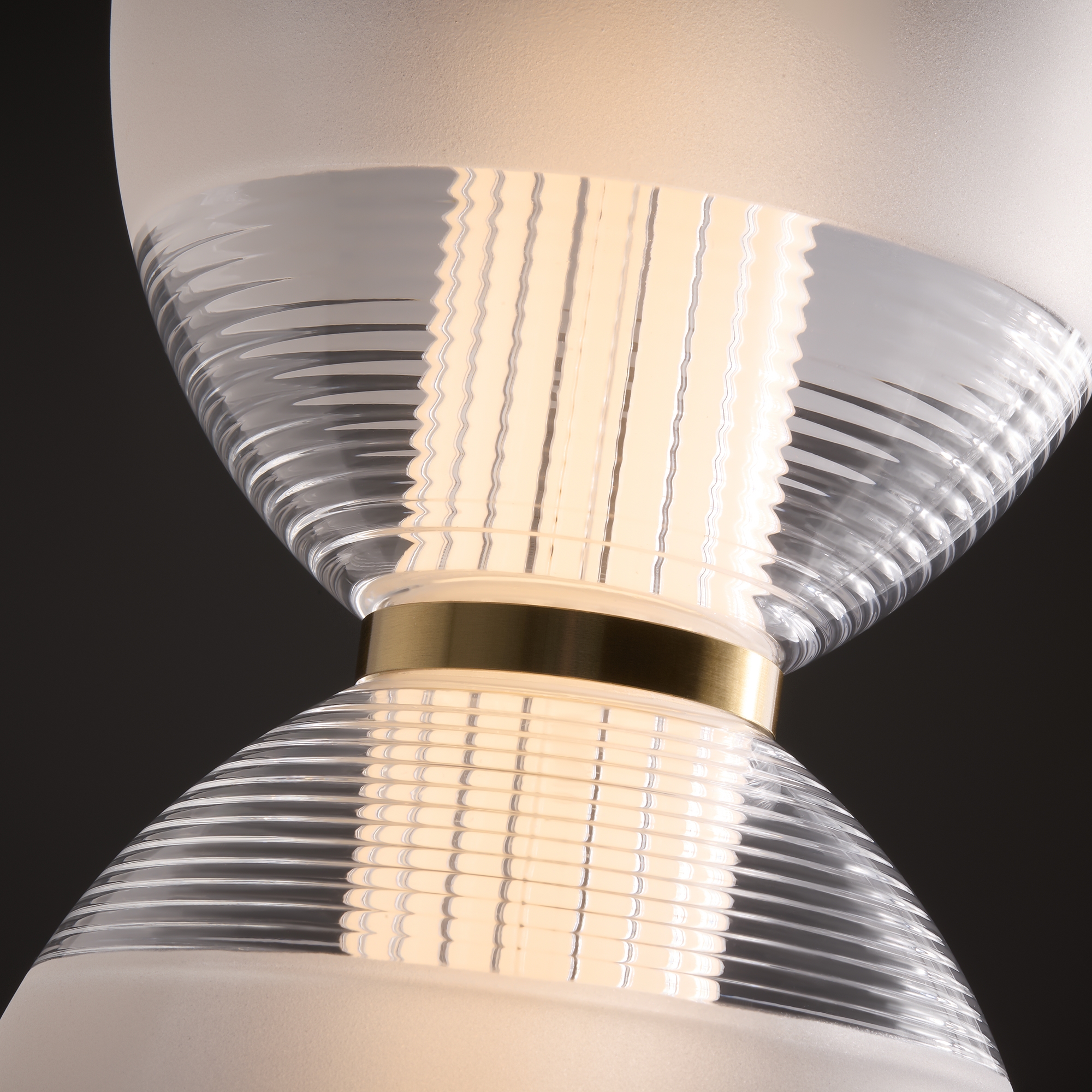 Арматура металл. Цвет арматуры латунь. Плафоны прозрачные с полупрозрачной окантовкой. LED источник света с цветовой температурой 3000К.