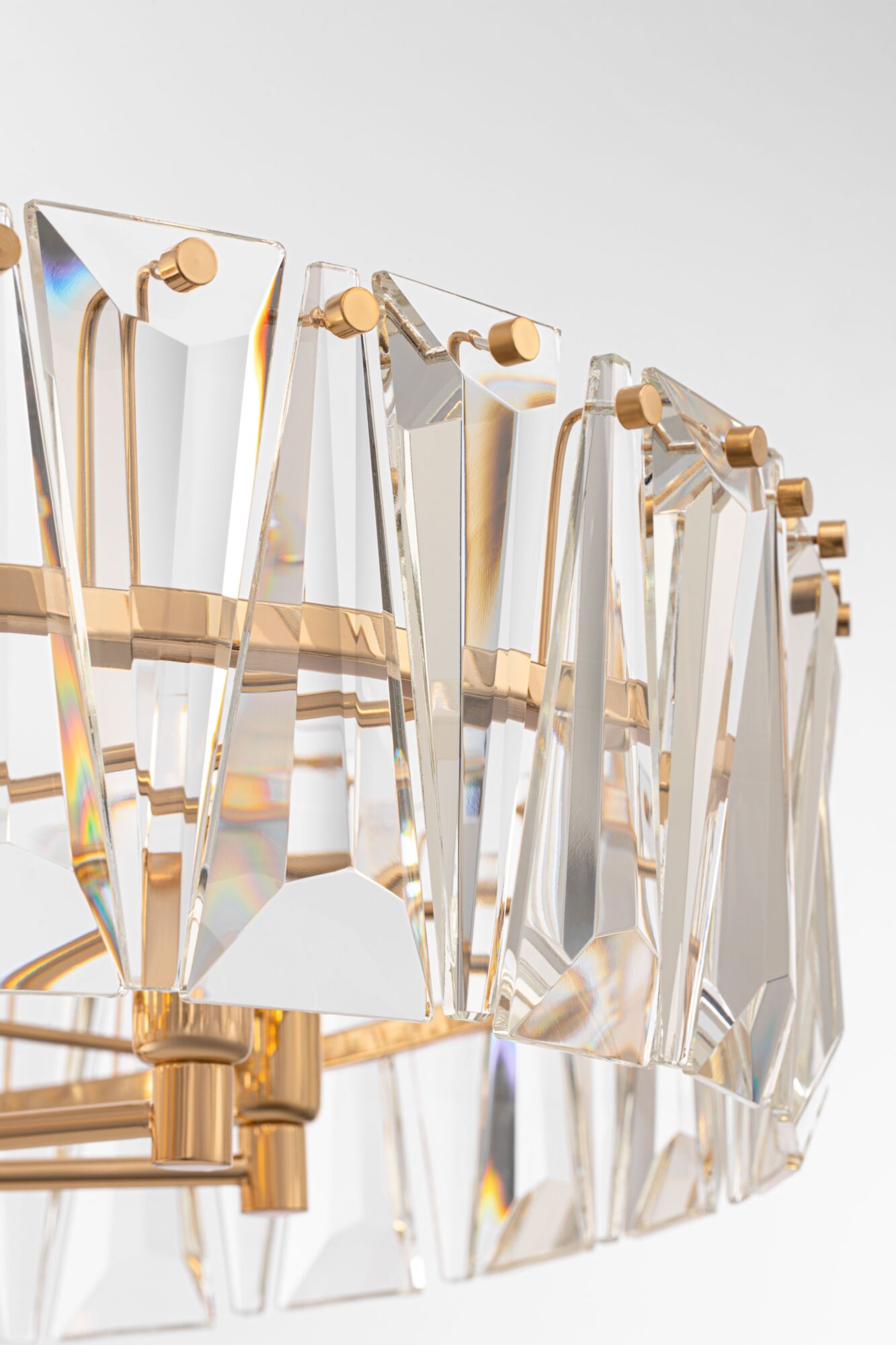 Материал арматуры – металл, оттенки – хром и золото. Декор – массивные крис таллы сложной огранки. Высота подвесных моделей регулируется длиной цепи. Источник света - лампа с цоколем Е14.