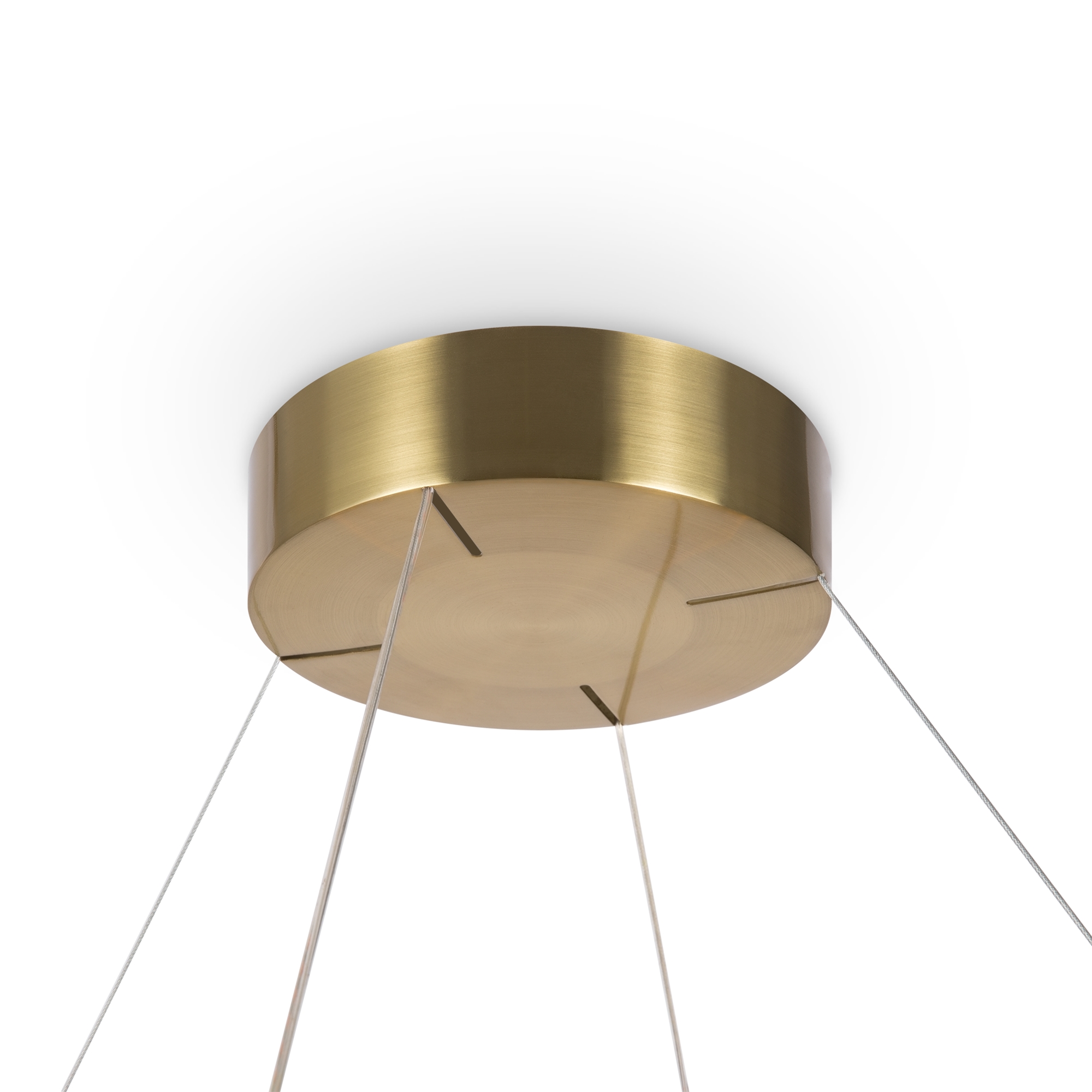МатМатериал арматуры - металл, цвет - латунь. Декор - объемные прозрачные хрустальные элементы с чередующимся рисунком. LED источник света, цветовая температура - 3000К. Регулируемая длина тросов.