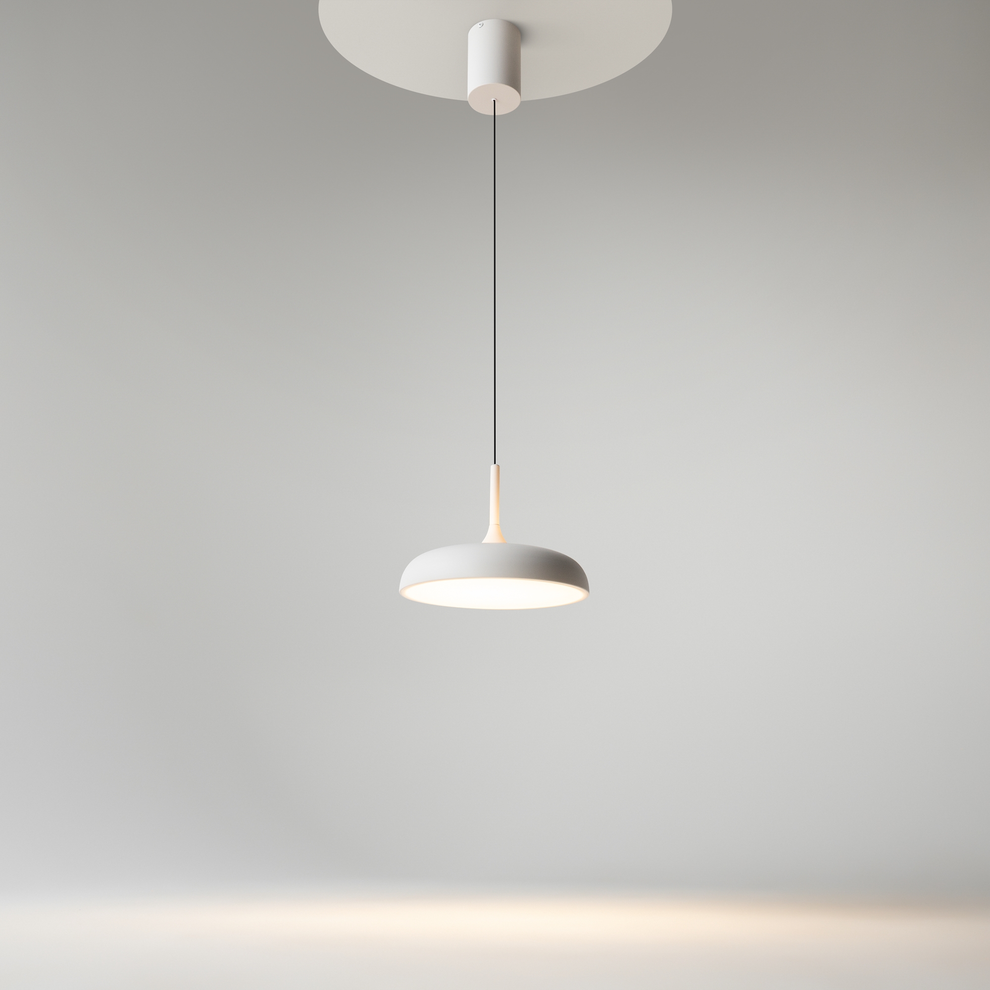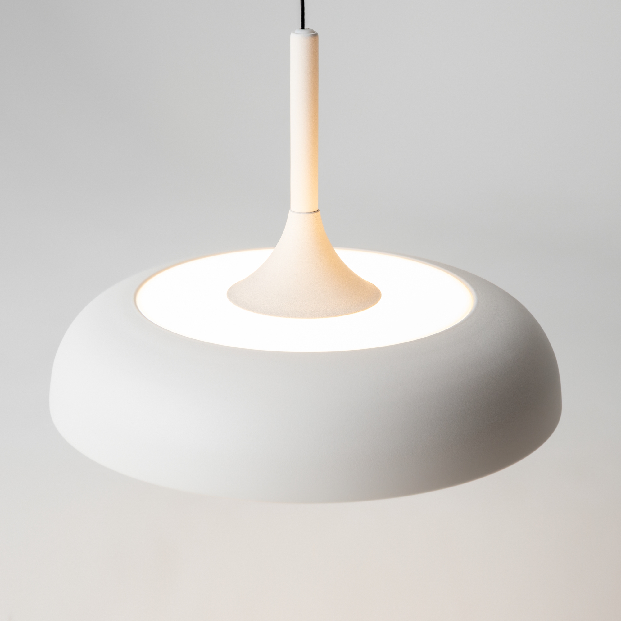 В минималистичной серии Gerhard представлены светильники в двух диаметрах (300 мм и 400 мм), двух цветах (черный и белый), а также в двух форматах. Первое поколение светильников – классические – направленный вниз свет, длина провода 3 метра. Второе поколение светильников – функциональные – двунаправленный источник света (вверх и вниз) и лифтовый механизм с проводом 2 метра, что позволяет менять высоту расположения светильника одним движением. LED-источник света с цветовой температурой 3000K.