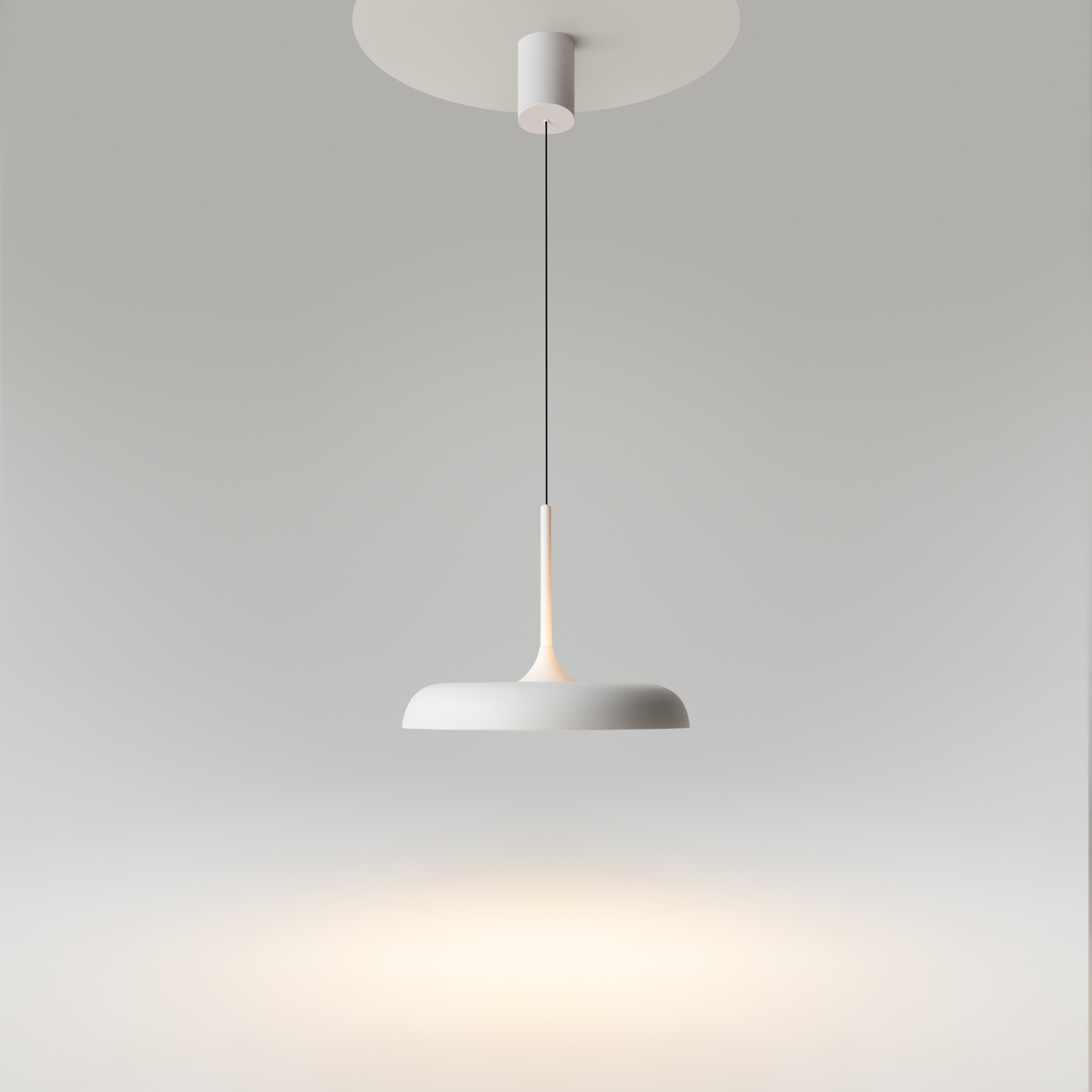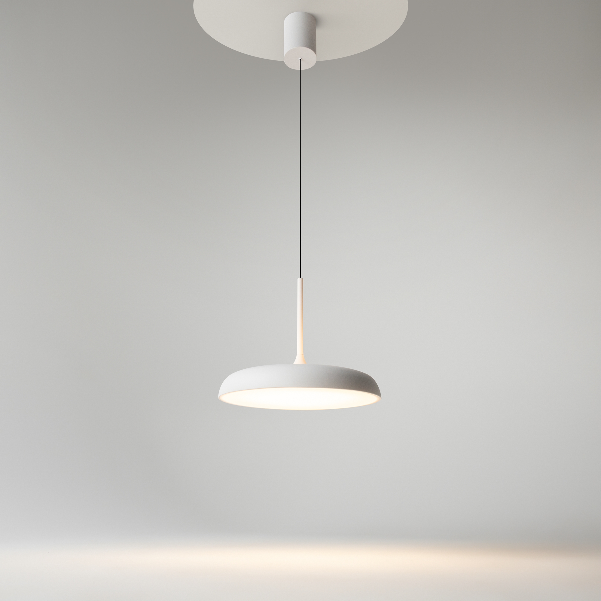 В минималистичной серии Gerhard представлены светильники в двух диаметрах (300 мм и 400 мм), двух цветах (черный и белый), а также в двух форматах. Первое поколение светильников – классические – направленный вниз свет, длина провода 3 метра. Второе поколение светильников – функциональные – двунаправленный источник света (вверх и вниз) и лифтовый механизм с проводом 2 метра, что позволяет менять высоту расположения светильника одним движением. LED-источник света с цветовой температурой 3000K.