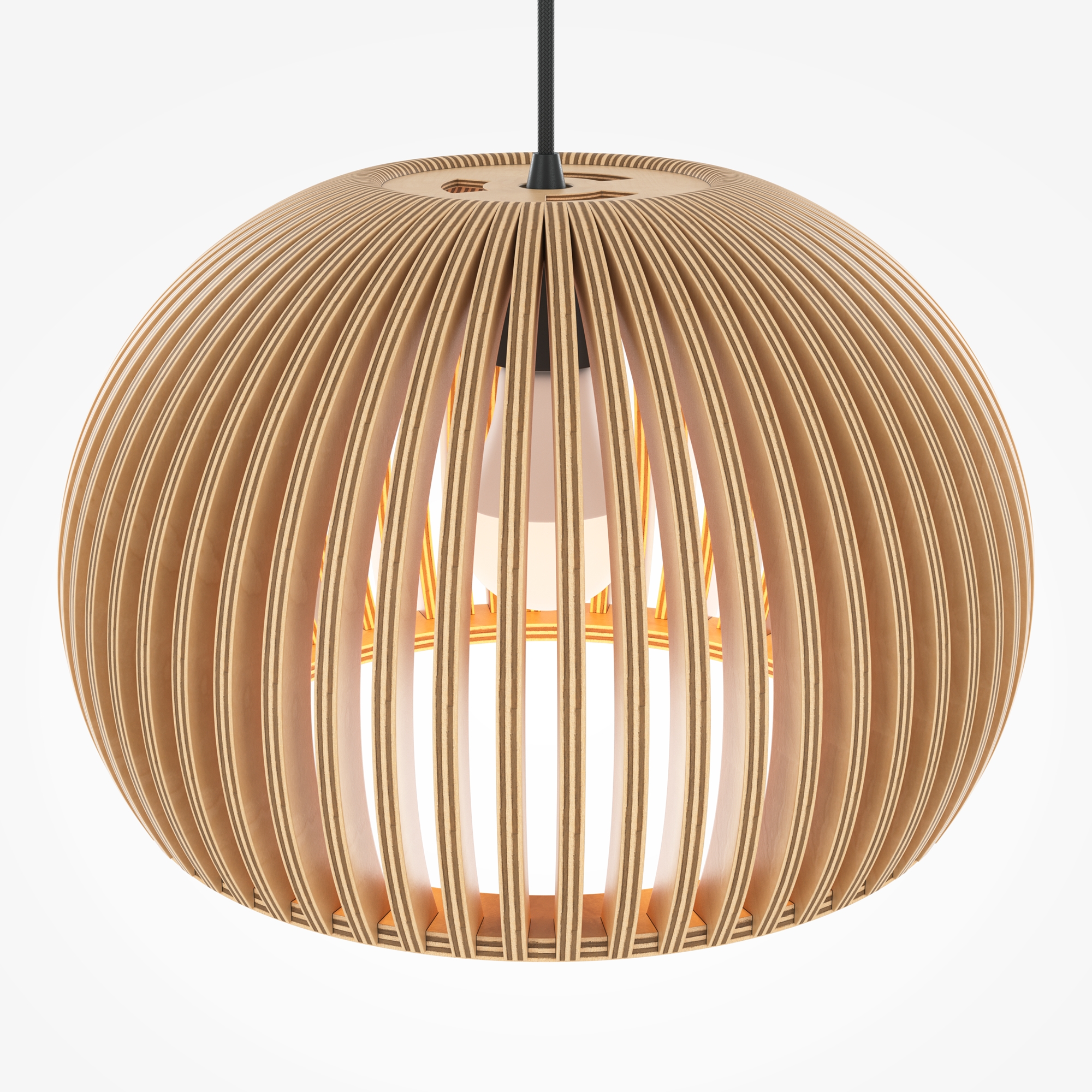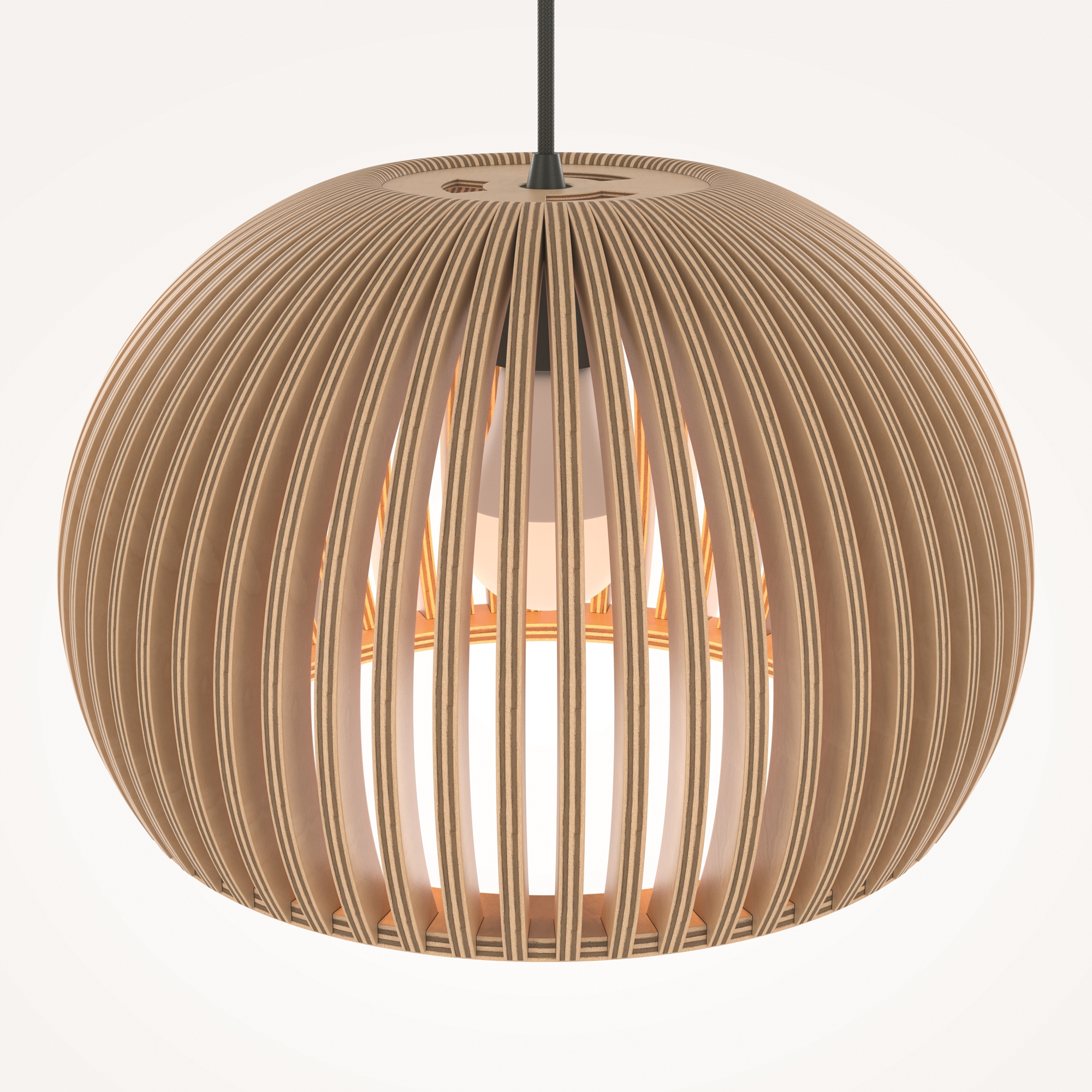 Материал арматуры – металл, цвет – черный. Абажур – 5-ти слойная фанера бежевого оттенка, покрытая специальным ла- ком. Тканевый черный провод. Регулируемая высота. Простые лаконичные форма, природные материалы. Цоколь E27.