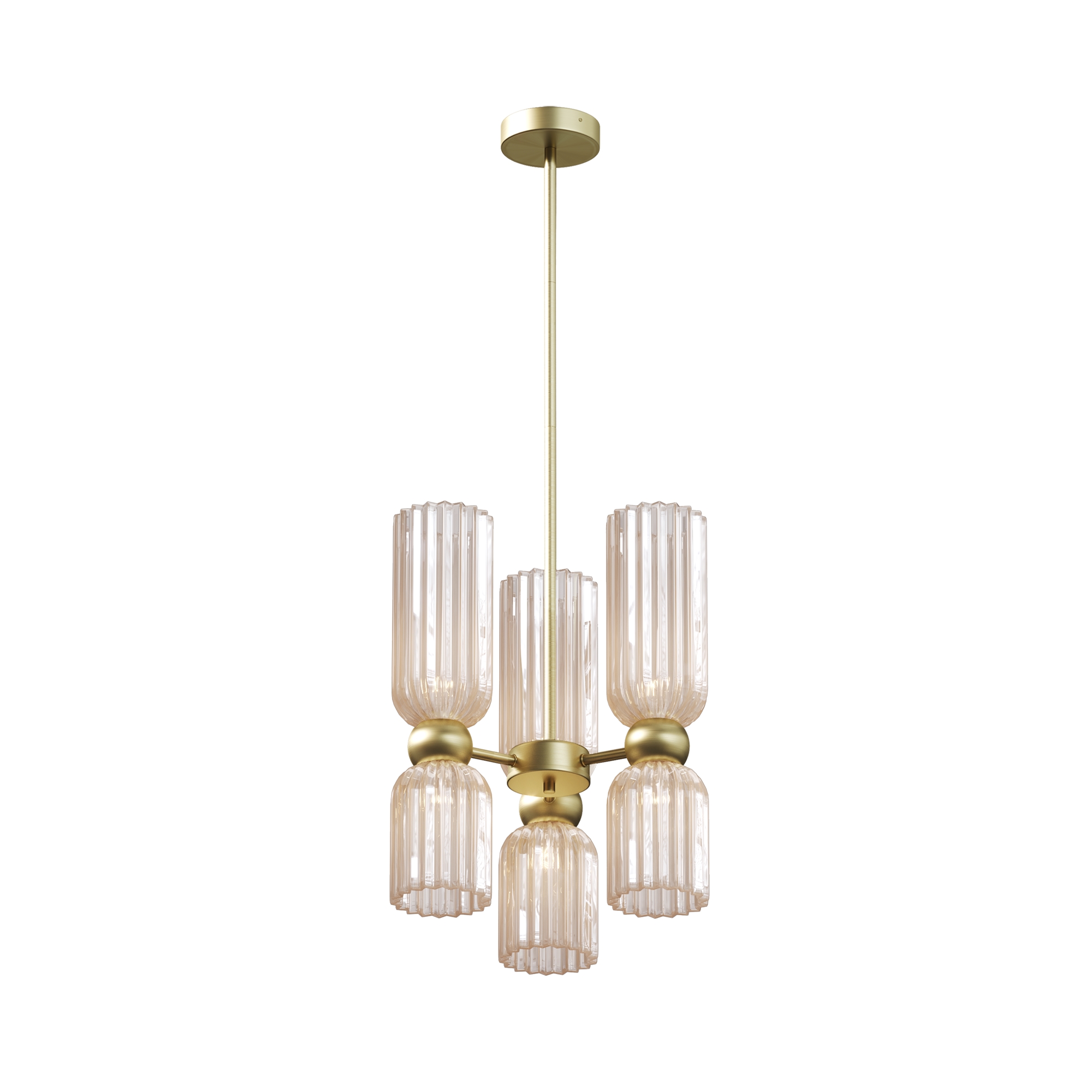 Металлическая арматура в цвете золота.Стеклянные плафоны нескольких цветов: коньячный, белый, серый. Рифленая поверхность стекла усиливает световые эффекты. Сменные источники света. Высота подвесных светильников регулируется сегментами штанги или с помощью трехметрового провода. Серия может использоваться в помещениях с высокими потолками. Доступны подвесные и настенные модели для создания разнообразных световых композиций.