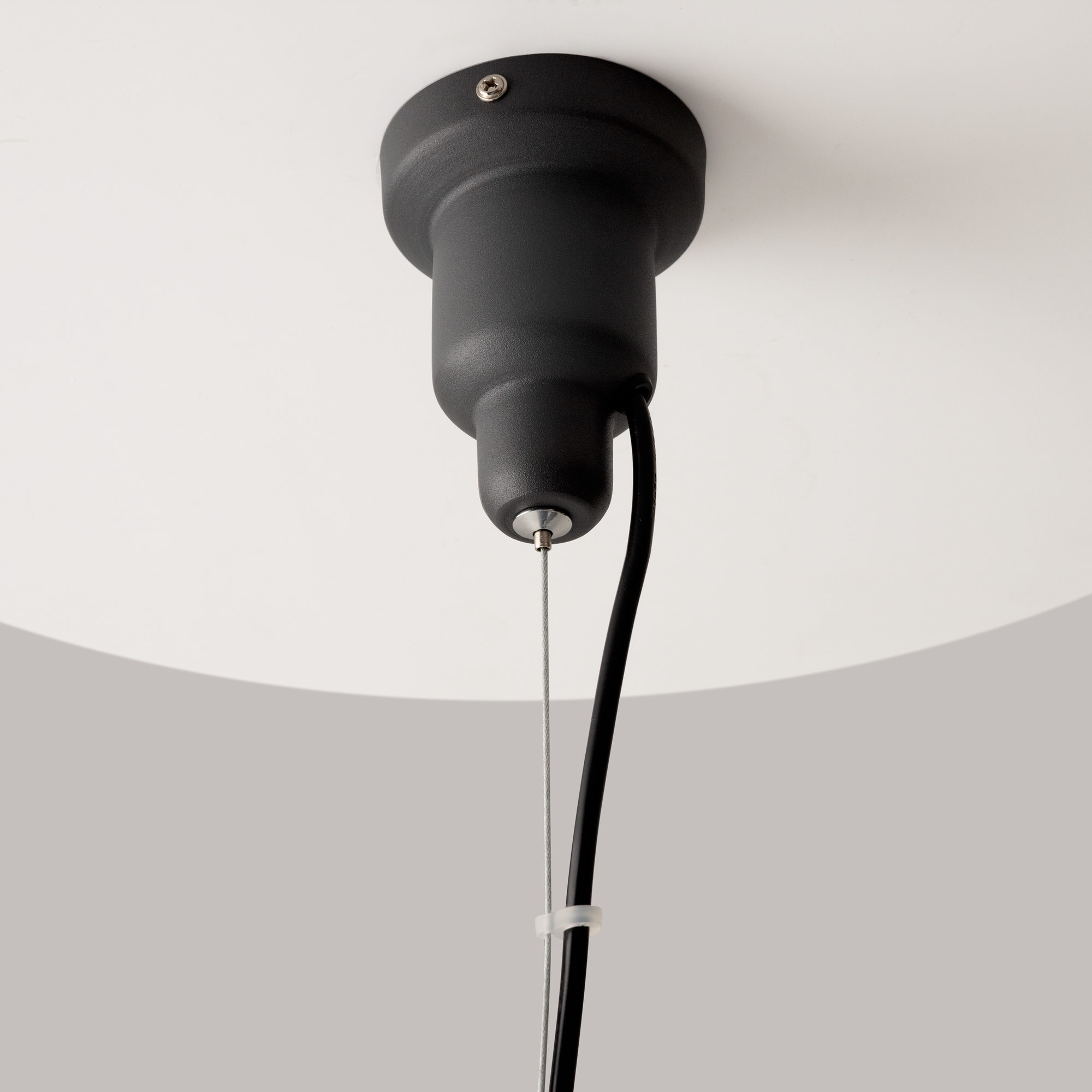 Арматура и плафон из металла. Три варианта оттенков: белый, серый и черный. Порошковое окрашивание с эффектом муара. Высота регулируется