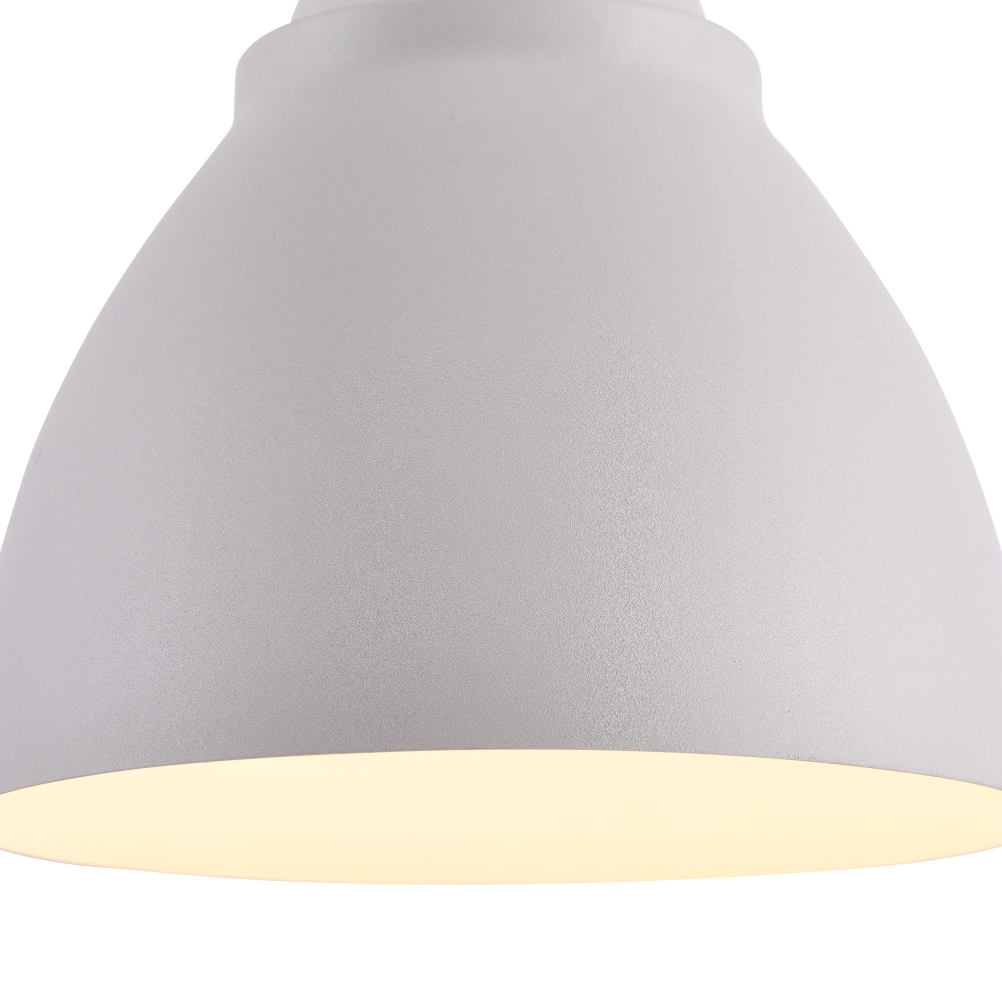 Арматура и плафон из металла. Три варианта оттенков: белый, серый и черный. Порошковое окрашивание с эффектом муара. Высота регулируется