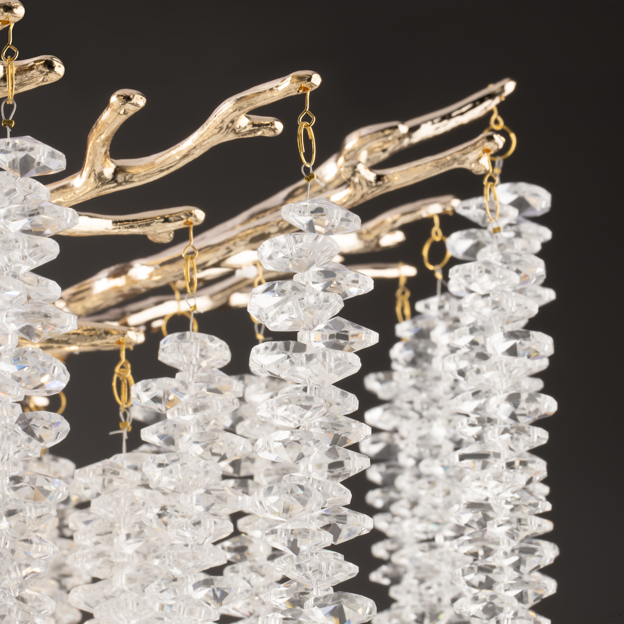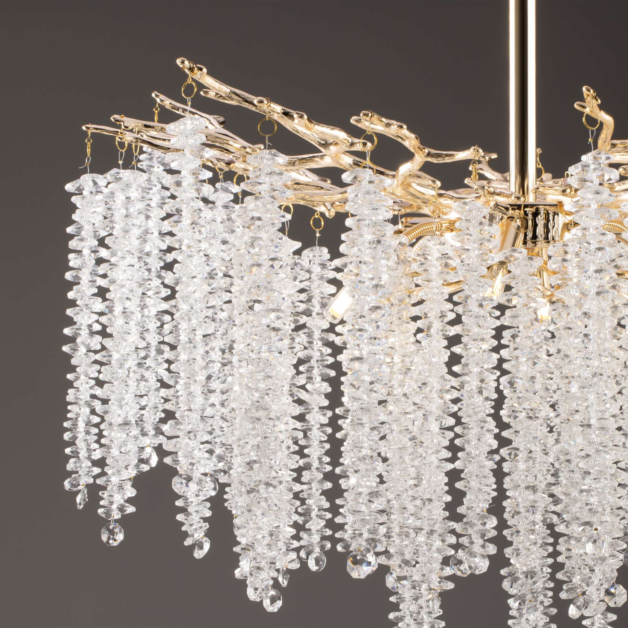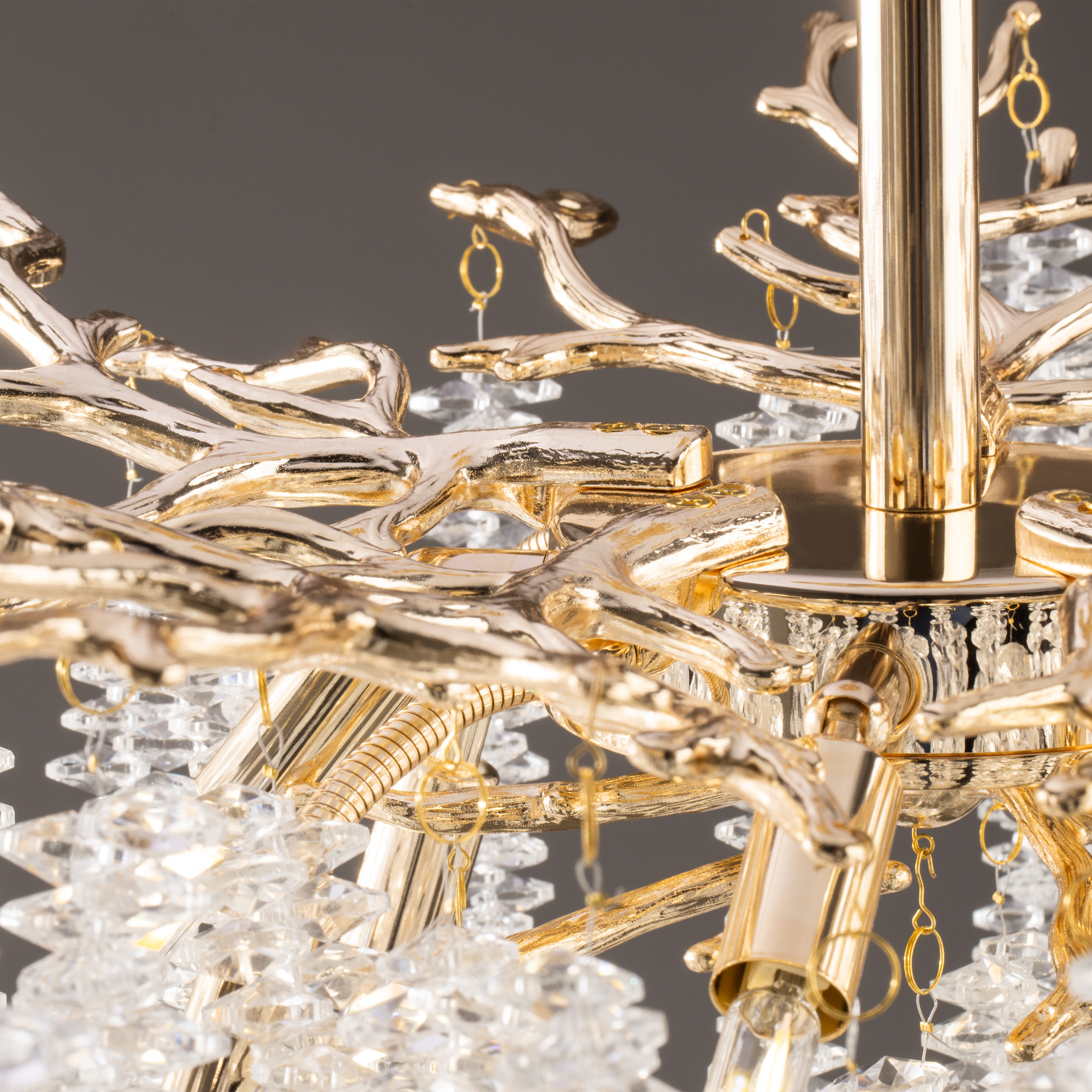 Материалы арматуры —металл, цвет — золото. Хрустальные декоративные элементы напоминают капельки - создают глубокие переливы света. Дизайн в трендовой растительной тематике. Источник света — лампа с цоколем G9 и с поворотной функцией.