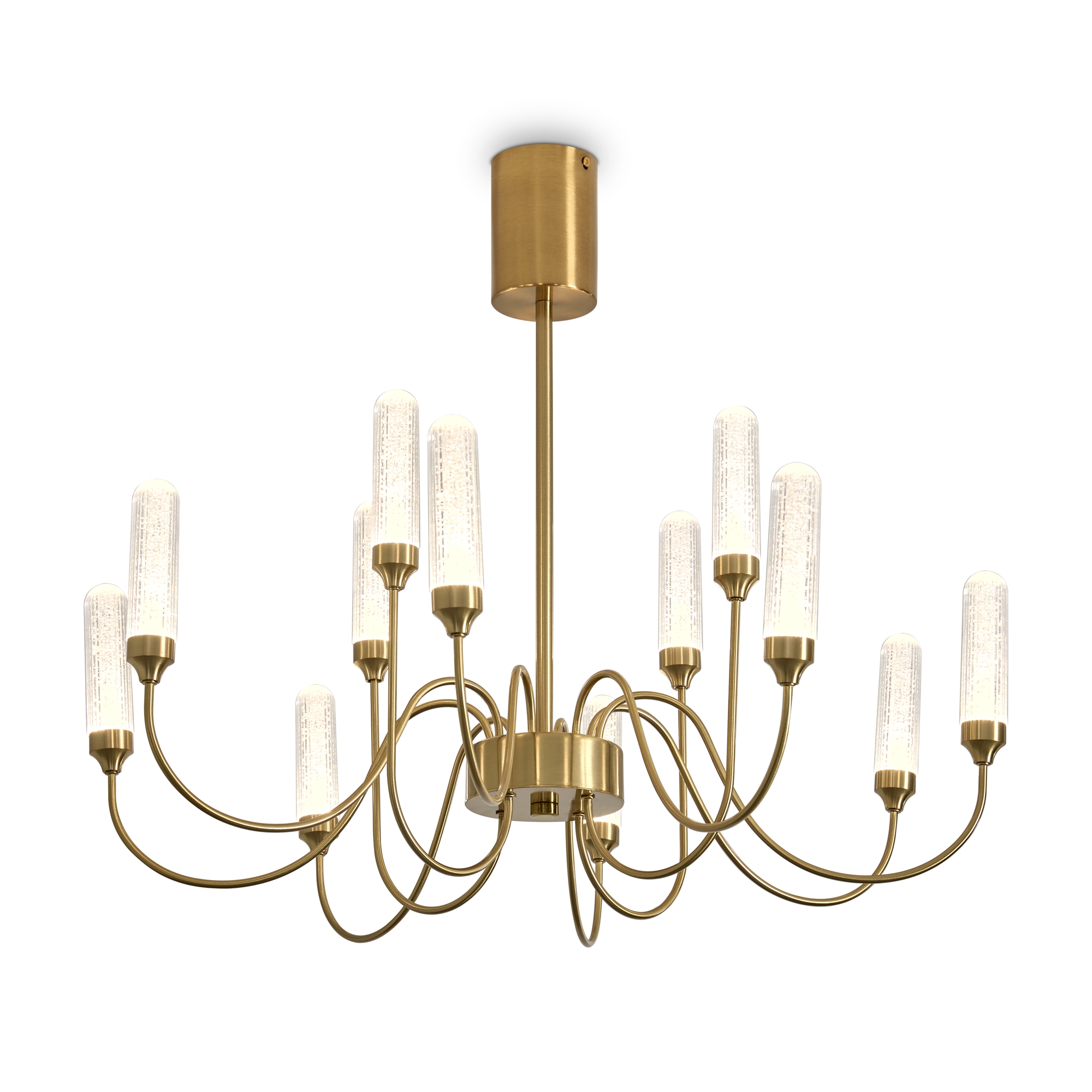 Арматура - металл в цвете латунь и никель. Основной акцент в дизайне люстр Alias сделан на акриловые плафоны, эффект пузырьков. Встроенный LED модуль 2700K. 2 дизайна подвесных светильников.