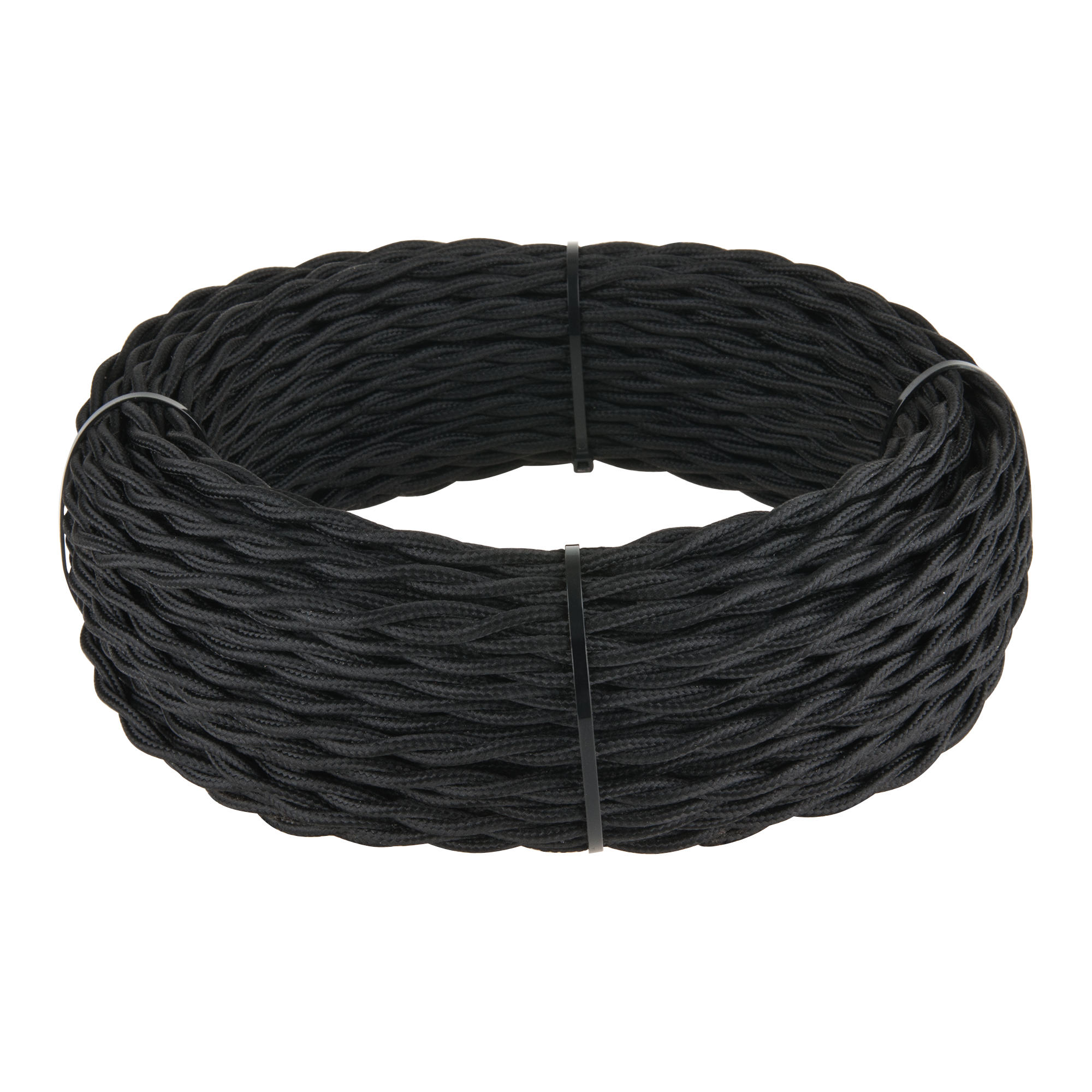 Ретро кабель витой 3х2,5 черный 20 м. Многожильный медный провод обеспечивает гибкость кабеля и его высокие электротехнические характеристики. Наружная оплетка кабеля имитирует натуральный шелк. Декоративно- защитная оплетка из полиэфирной нити придает кабелю эстетичный внешний вид, выгодно отличаясь высокой прочностью и гигиеничностью. Неоспоримым преимуществом в плане качества является то, что нити оплетки провода имеют специальную пропитку, которая делает их негорючими, поэтому такая ретро проводка подходит для того, чтобы размещать ее открытым способом.