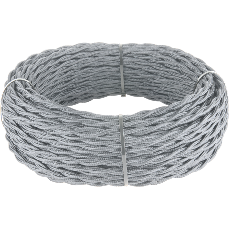 Ретро кабель витой 3х2,5 серый 50 м. Многожильный медный провод обеспечивает гибкость кабеля и его высокие электротехнические характеристики. Наружная оплетка кабеля имитирует натуральный шелк.