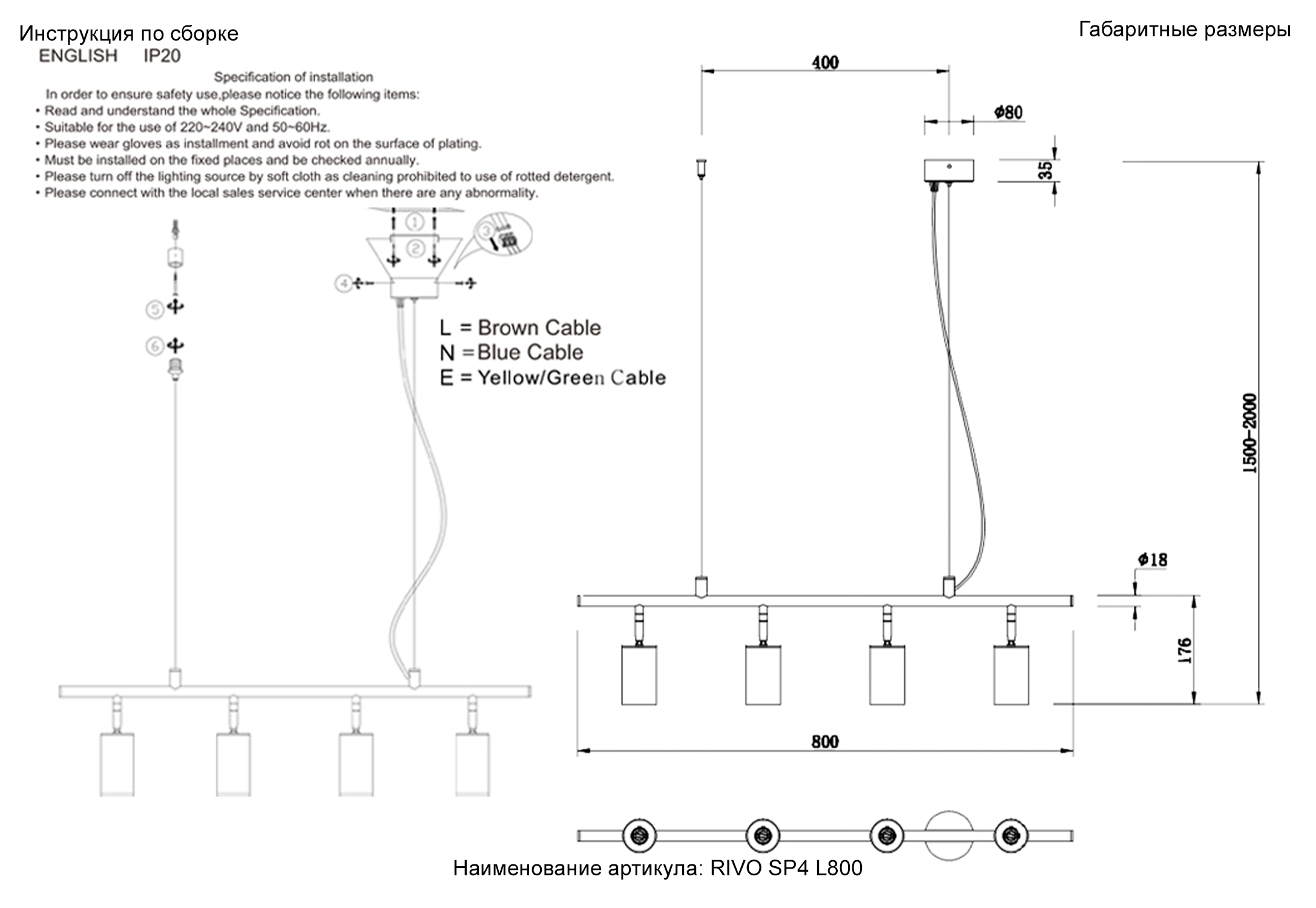 Высота с цепью/тросом, мм