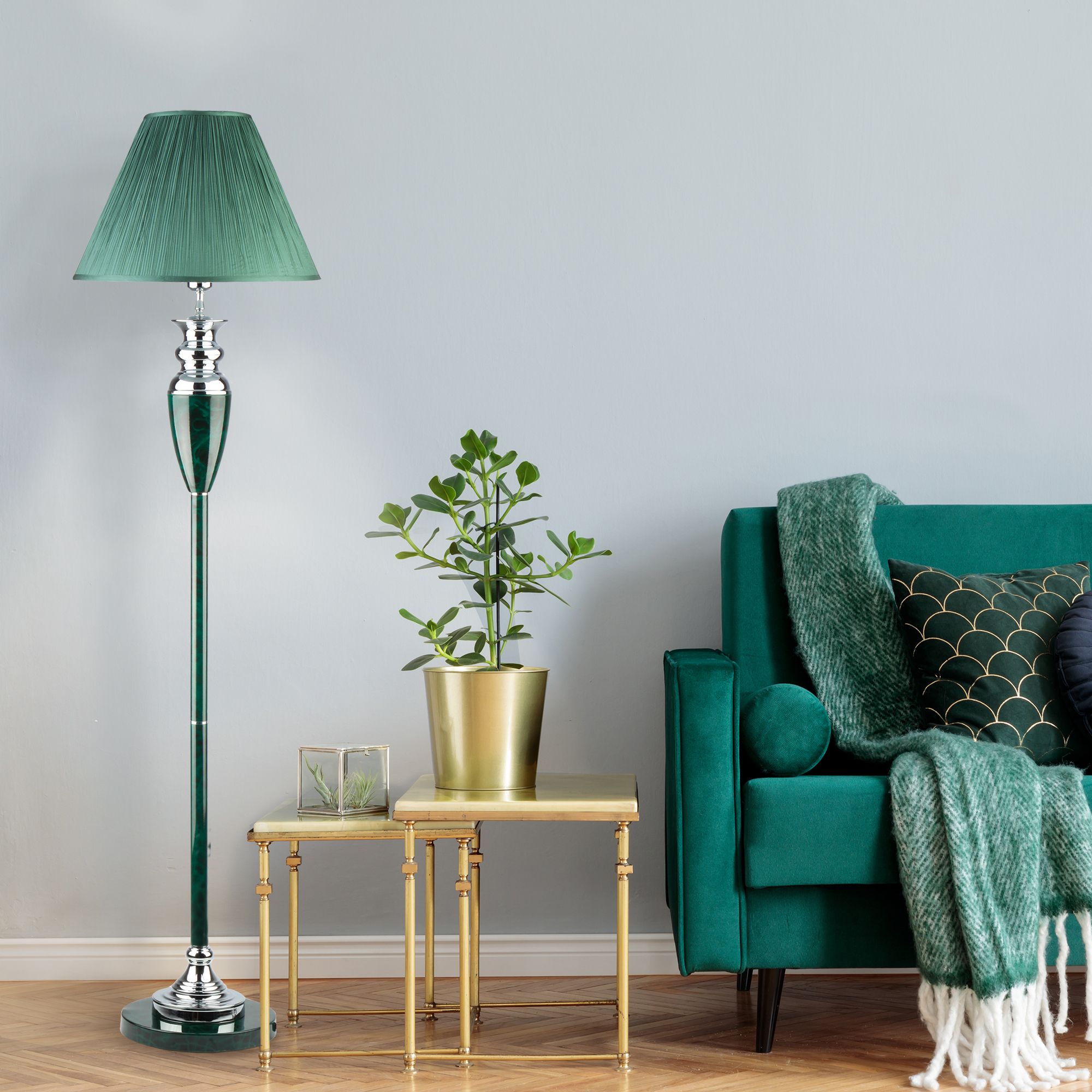 Торшер с тканевым абажуром 009/1T RDM в зеленом цвете - это стильный элемент светового дизайна в современных и классических интерьерах. Эффектный торшер со сменной лампой E27 поможет создать качественное дополнительное освещение на площади 2 м² и станет роскошным украшением вашей спальни или гостиной.