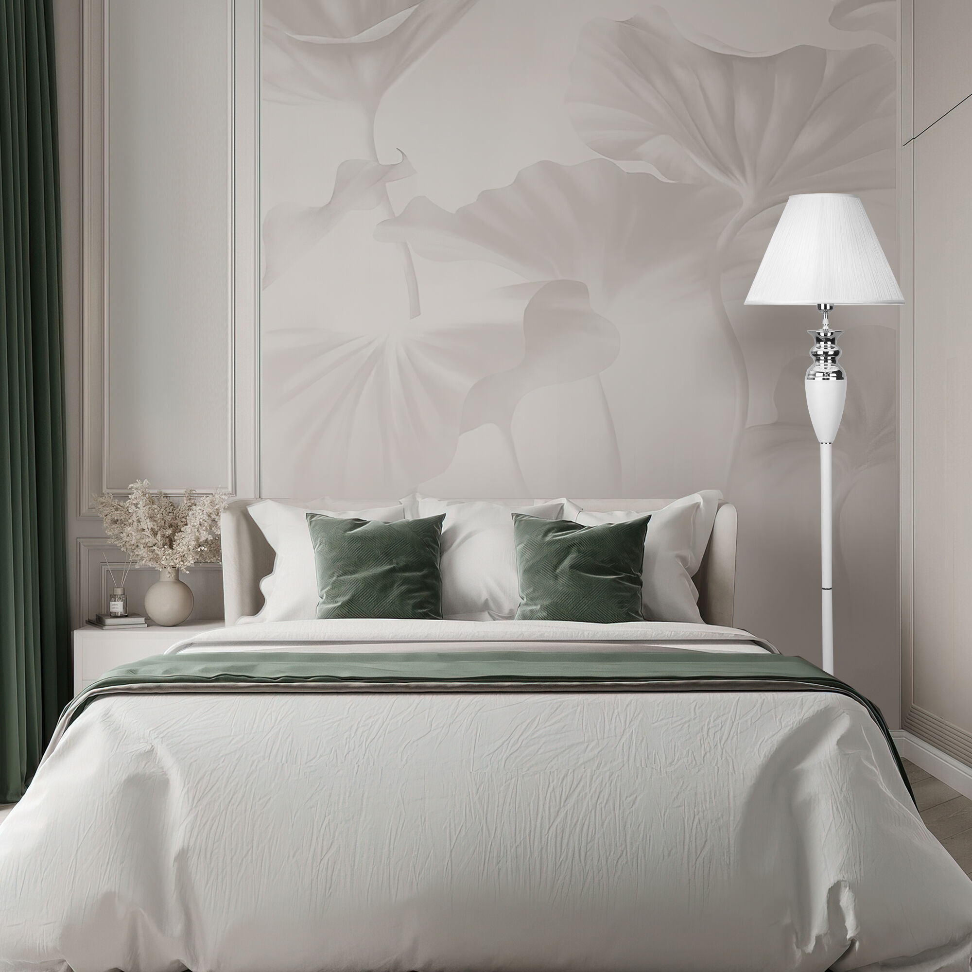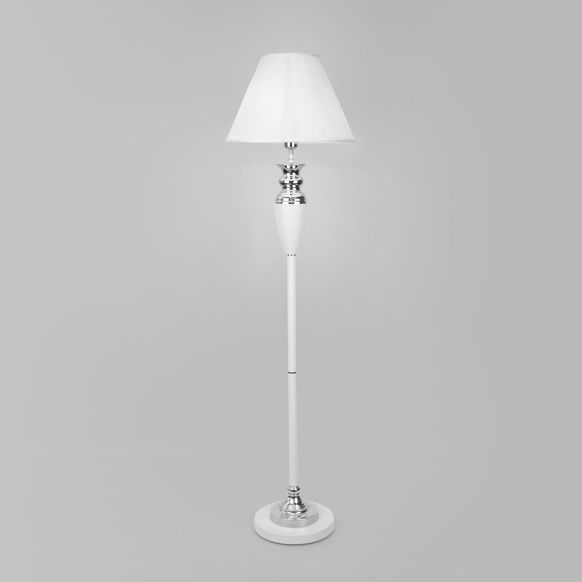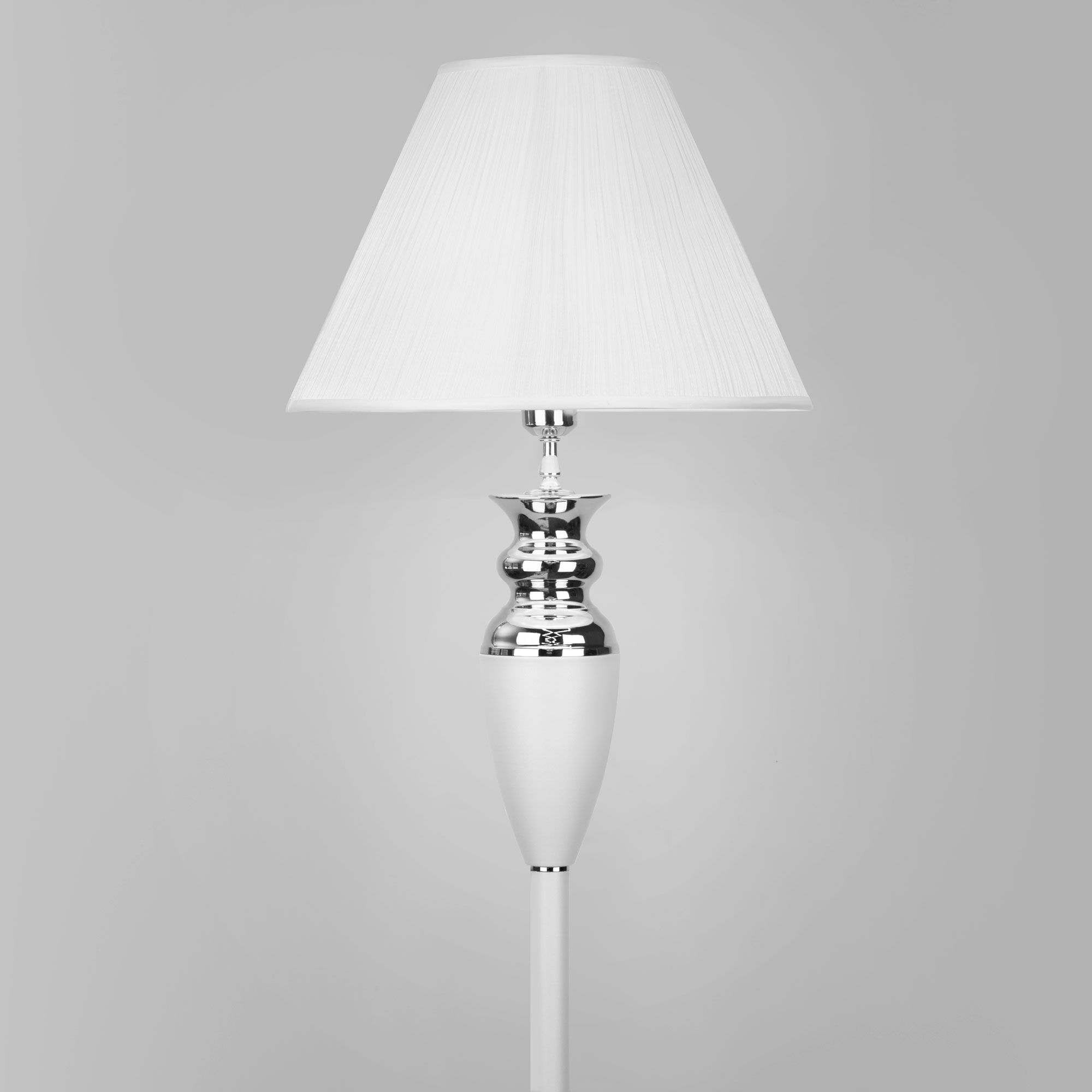 Торшер с тканевым абажуром 009/1T RDM в белом цвете - это стильный элемент светового дизайна в современных и классических интерьерах. Эффектный торшер со сменной лампой E27 поможет создать качественное дополнительное освещение на площади 2 м² и станет роскошным украшением вашей спальни или гостиной.