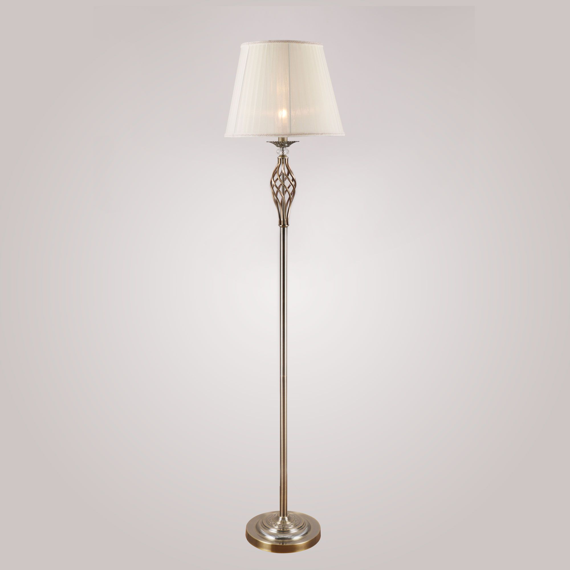 Торшер с тканевым абажуром 01003/1 в цвете античная бронза-это стильный элемент светового дизайна в современных и классических интерьерах. Эффектный торшер со сменной лампой E14 поможет создать качественное дополнительное освещение на площади 3 м² и станет роскошным украшением вашей спальни или гостиной.