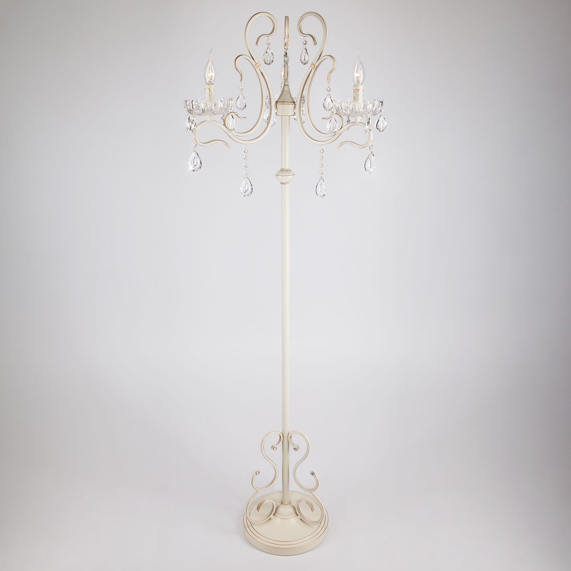 Благодаря рожкам в виде подсвечников, напольный светильник придаст аристократичного стиля в вашем интерьере. Прочный металлический корпус светильника устойчив к механическим воздействиям, а защитное покрытие обеспечивает надежную электроизоляцию и презентабельный внешний вид.