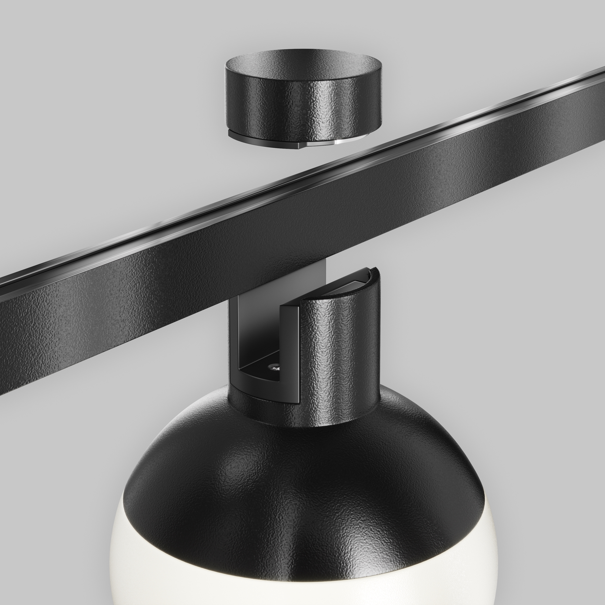 Арматура из алюминия. Два цветовых варианта – черный и латунь. Шарообразный плафон из матового стекла. LED-источники света премиального бренда Osram с цветовой температурой 3000К, с углом рассеивания 120 ° и высоким коэффициентом цветопередачи Ra 90. Надежное крепление к шине посредством неодимовых магнитов, легкое передвижение в требуемом направлении. Поддерживается функция диммирования в группе с условием использования блоков питания DALI / 0~10V.