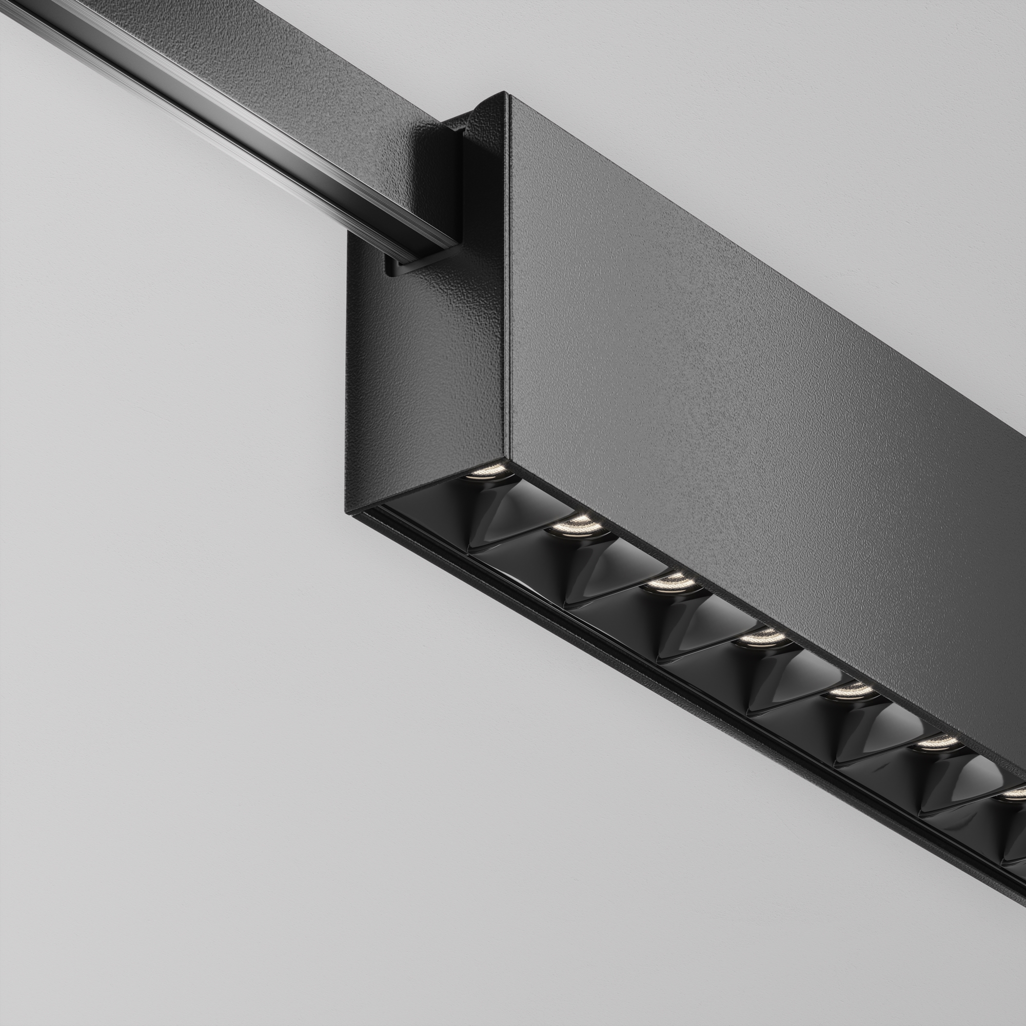 Материал изготовления корпуса — алюминий. Выполнен в черном цвете или в цвете латунь. Источник света – светодиодные лампы бренда Osram мощностью 12В со следующими характеристиками: угол рассеивания - 40°, индекс цветопередачи выше Ra 90, цветовая температура - 3000К. Наличие в конструкции специальной линзованной оптики отвечает за формирование точно сфокусированного луча для яркого светового акцента. Общая длина светильника 232 мм. Доступна функция диммирования при установки соответствующих блоков питания.