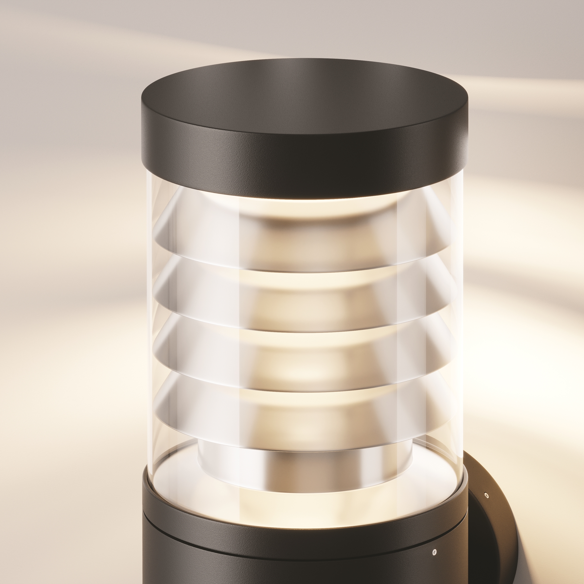 Алюминиевый корпус, цвет - графит. Многослойный каскадный рассеиватель серебристого цвета скрывает LED-источник света, предотвращая эффект слепимости и мягко рассеивает свет. Цветовая температура - 3000К. Степень защиты - IP54.