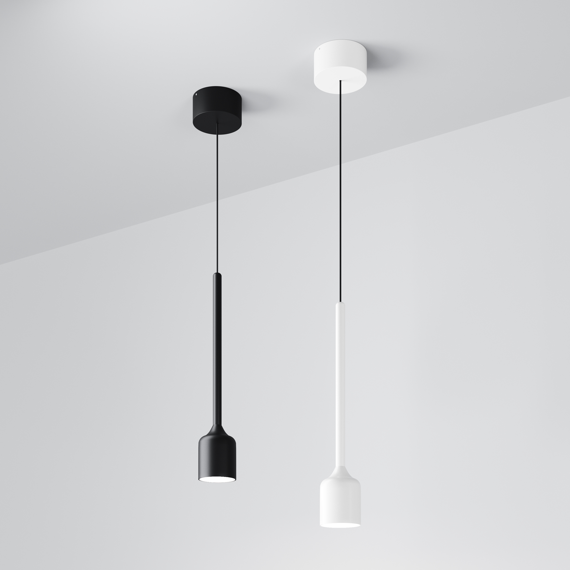Материал арматуры - алюминий, цвет - черный и белый. LED-источник света, цветовая температура 3000К, мощность 6 и 8Вт, высокий индекс цветопередачи >90, высокая степень защиты от пыли и влаги IP54. Лаконичный минималистичный дизайн. Регулируемая высота провода.