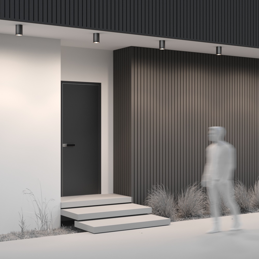 Металлический корпус в трендовом графитовом оттенке. Устойчивость к коррозии и перепадам температур. Высокий уровень IP 65. Компактные размеры. LED-модуль, цветовая температура 3000 К. Серия представлена потолочными светильниками различного диаметра и мощности.