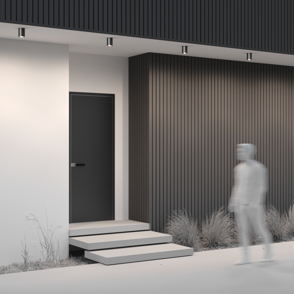 Металлический корпус в трендовом графитовом оттенке. Устойчивость к коррозии и перепадам температур. Высокий уровень IP 65. Компактные размеры. LED-модуль, цветовая температура 3000 К. Серия представлена потолочными светильниками различного диаметра и мощности.